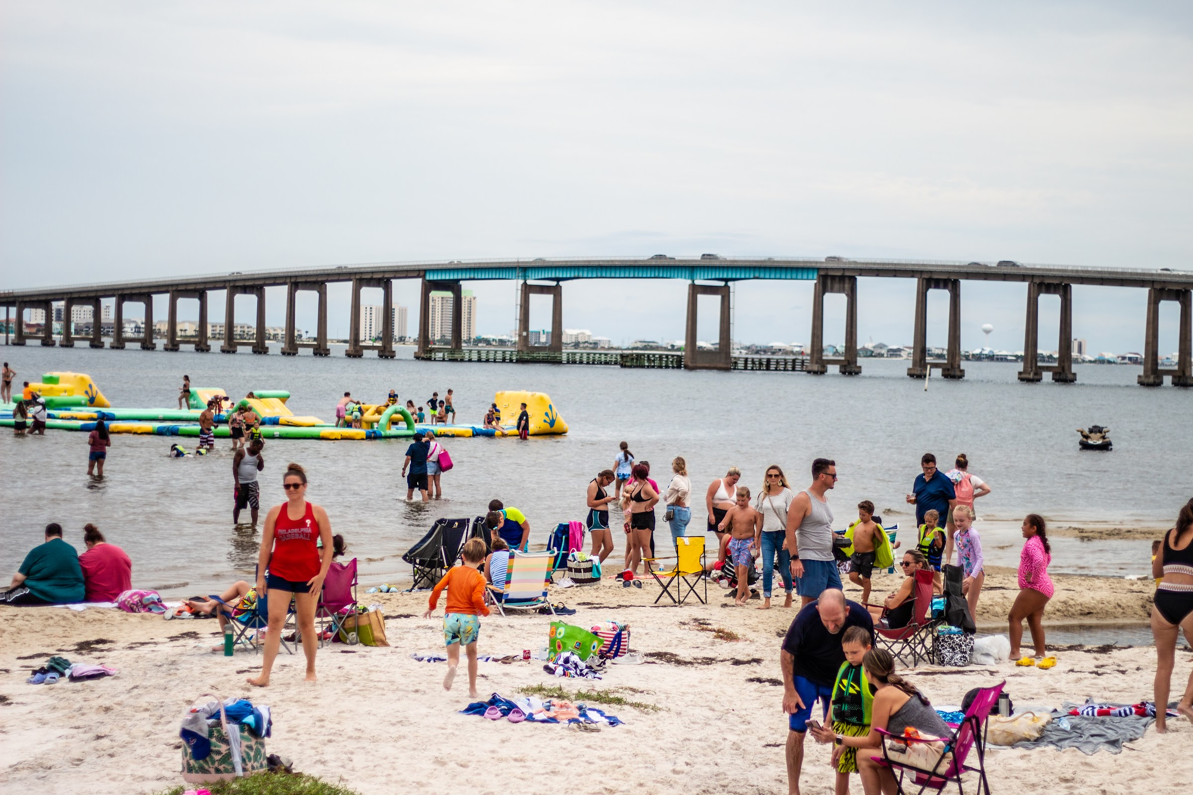 Family-friendly hangout with a bouncy water park, jet skis and kayaking opportunities.