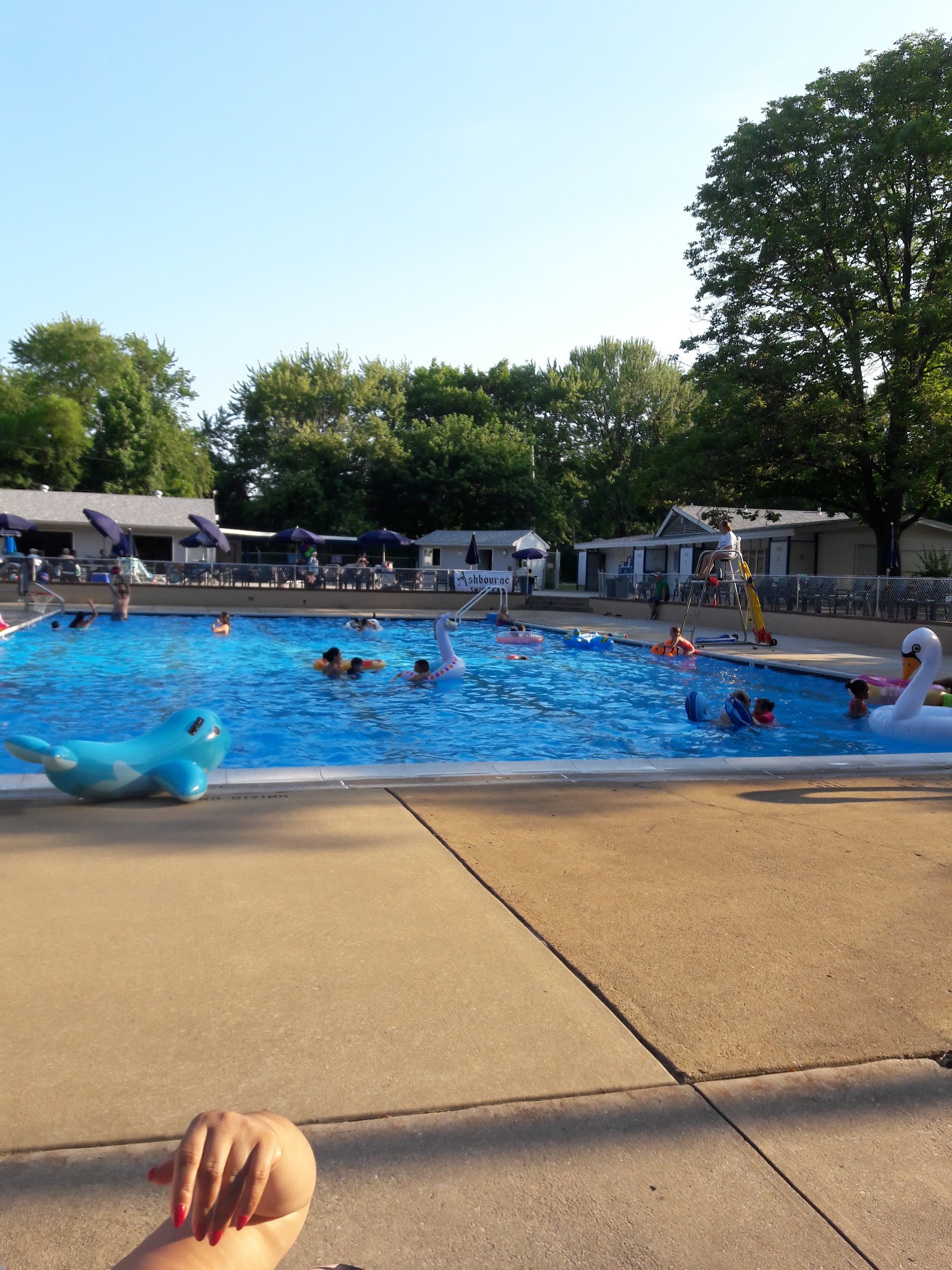 If you're lucky enough to have a membership or come as a guest, you'll be very pleased with your experience. There is a nice size baby pool, a playground, a diving board and slide in a 12-ft pool, Plus they also have a 3 ft pool that runs the length of the pool and part of the width so that if you have smaller children, it's very safe to play in. The staff is friendly and very helpful and the members there are one of a kind. It's like a big family. I would recommend Ashbourne Swim Club to anybody this is our second year and we plan to be lifers.