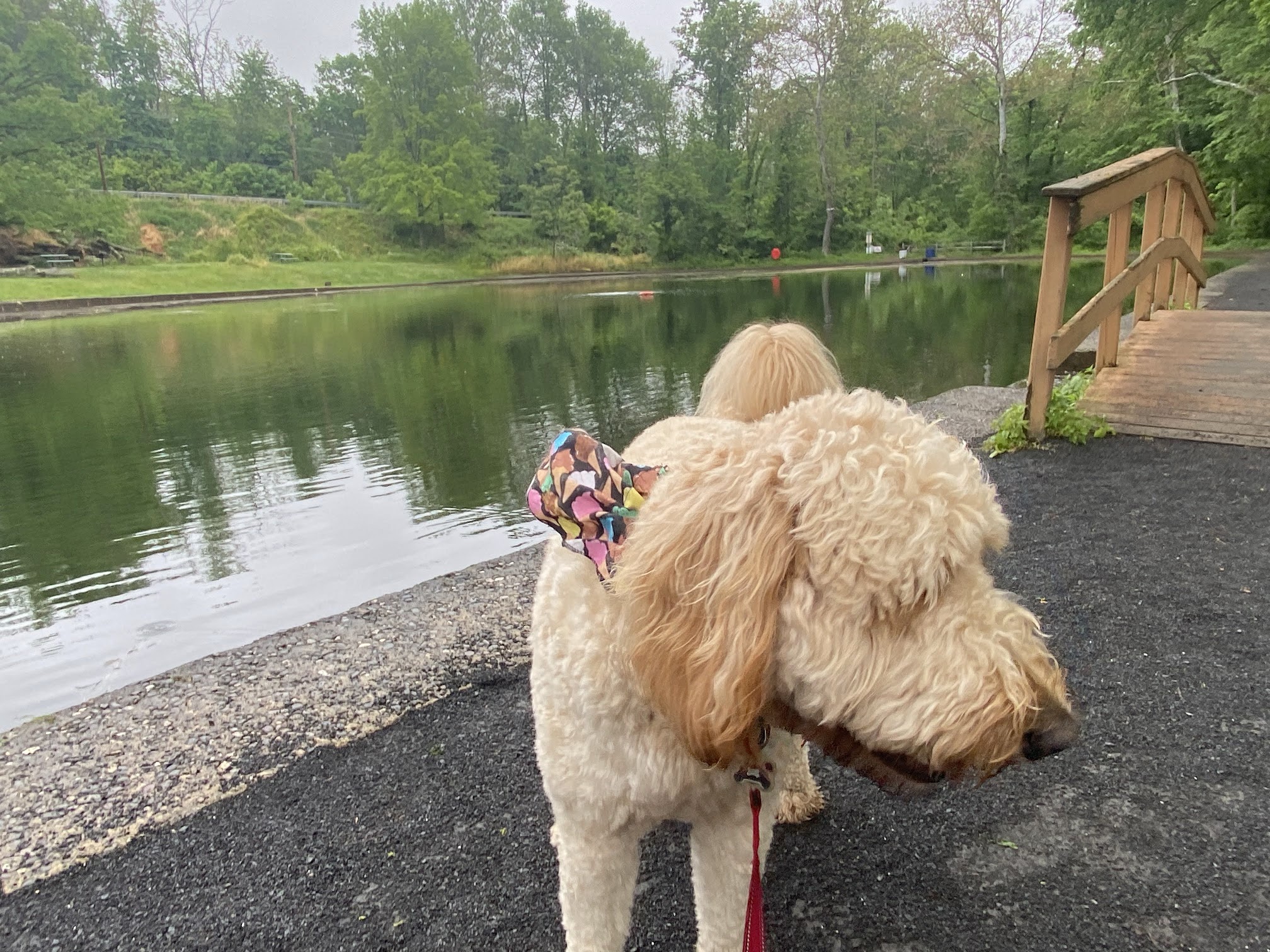 My old dog Stuart couldn't deal with the drive to the beach. We turned around and found the closest thing. He got to sniff alot of strange smells, and seemed to have a great walk anyway. Met another nice dog too!
