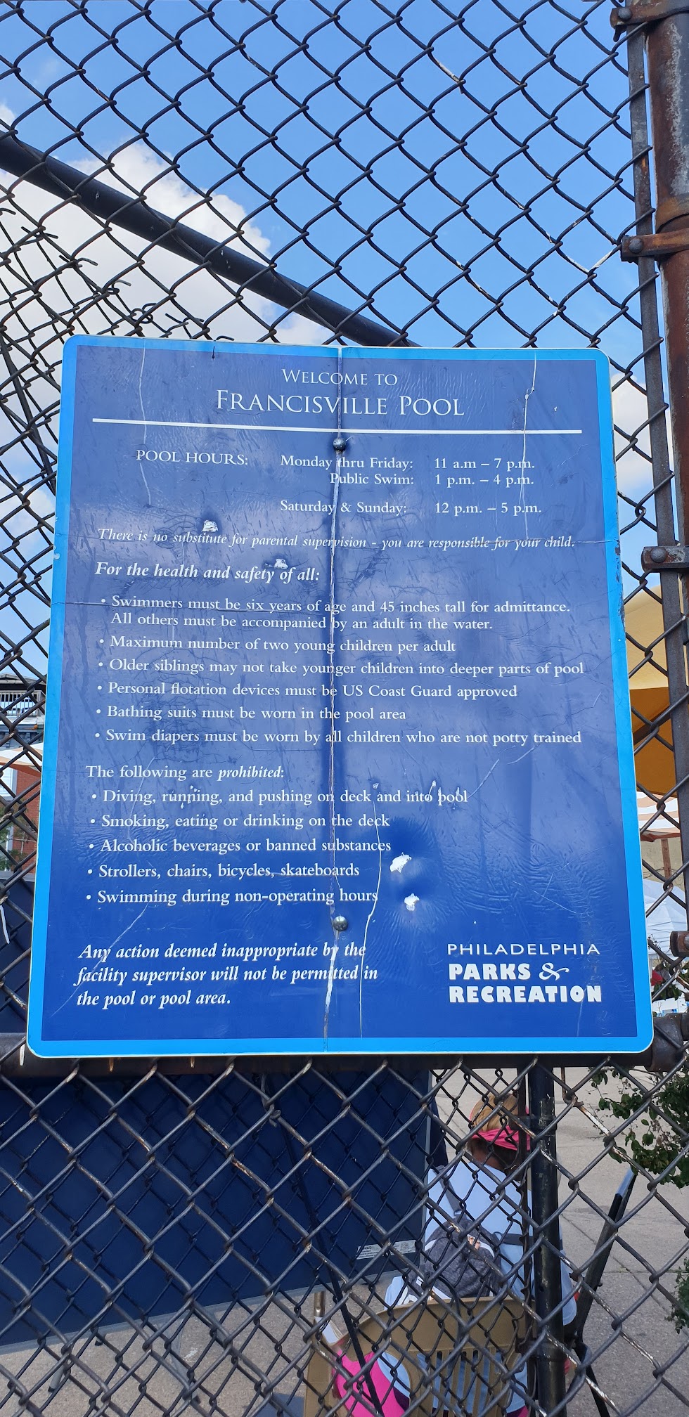 Francisville Pool, located at 1737 Francis St, Philadelphia, PA, is a public outdoor swimming facility managed by Philadelphia Parks & Recreation. It serves as a popular community hub during the summer months, offering recreational swimming, lap swimming, and sometimes lessons, complete with lifeguard supervision and essential amenities for local residents.