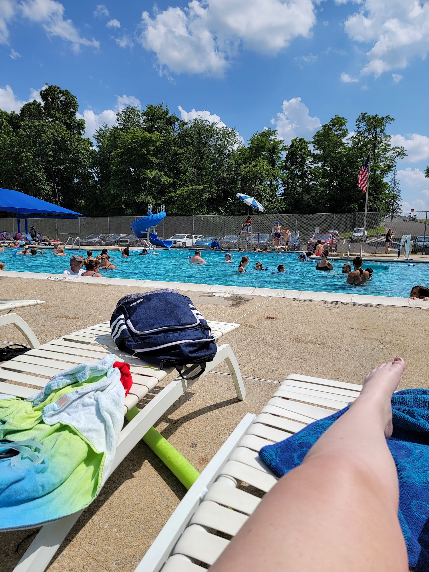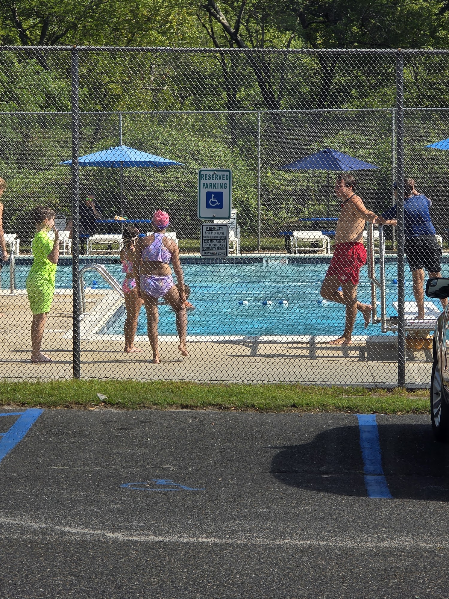 It is a pool. Pool and lifeguards do the job , really not that crowded, baby pool . Slide and 3 ft diving board. Pool area well kept but basketball and any other amenities are not kept up with at all. All over, I'd bond with a swim club bc of a 4 yr old daughter.
