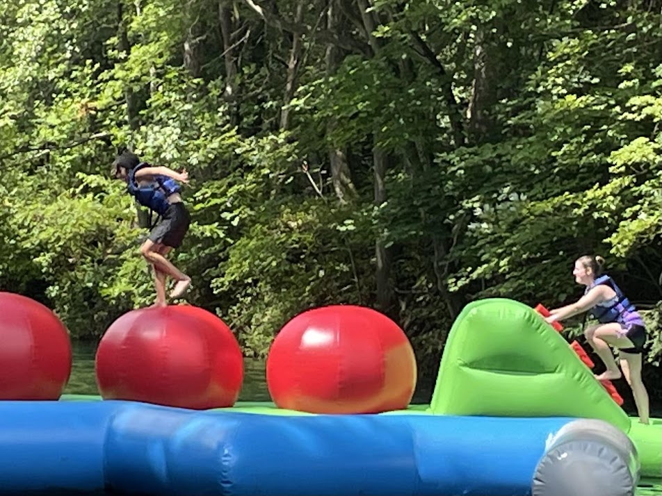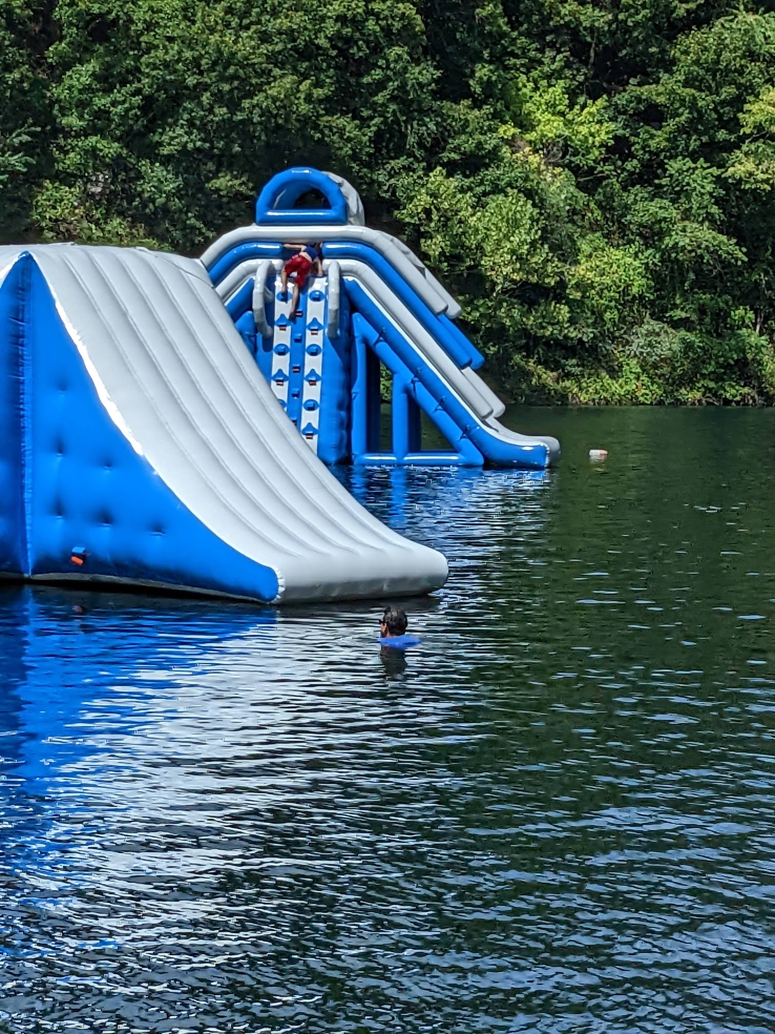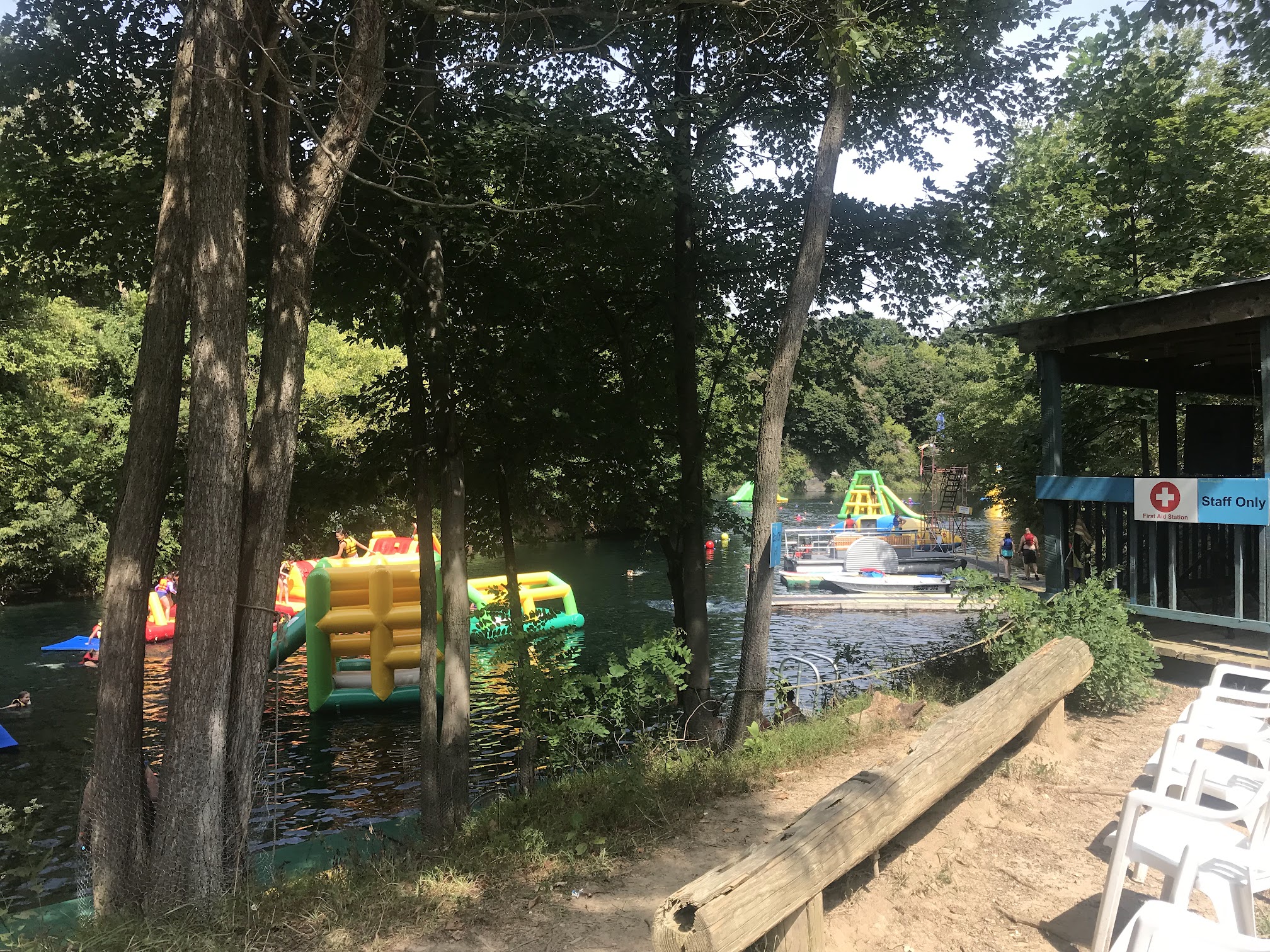 The kids had a blast, and the adults really enjoyed it also. There are lots of inflatables in the lake, which is beautifully clear and clean. Everyone wears life vests and swims and climbs from one fun thing to another. The younger kids did need a boost from a parent to get on a lot of the inflatables. Our favorite was definitely the hamster wheel. The staff was very friendly and helpful and we all had a really fun day!