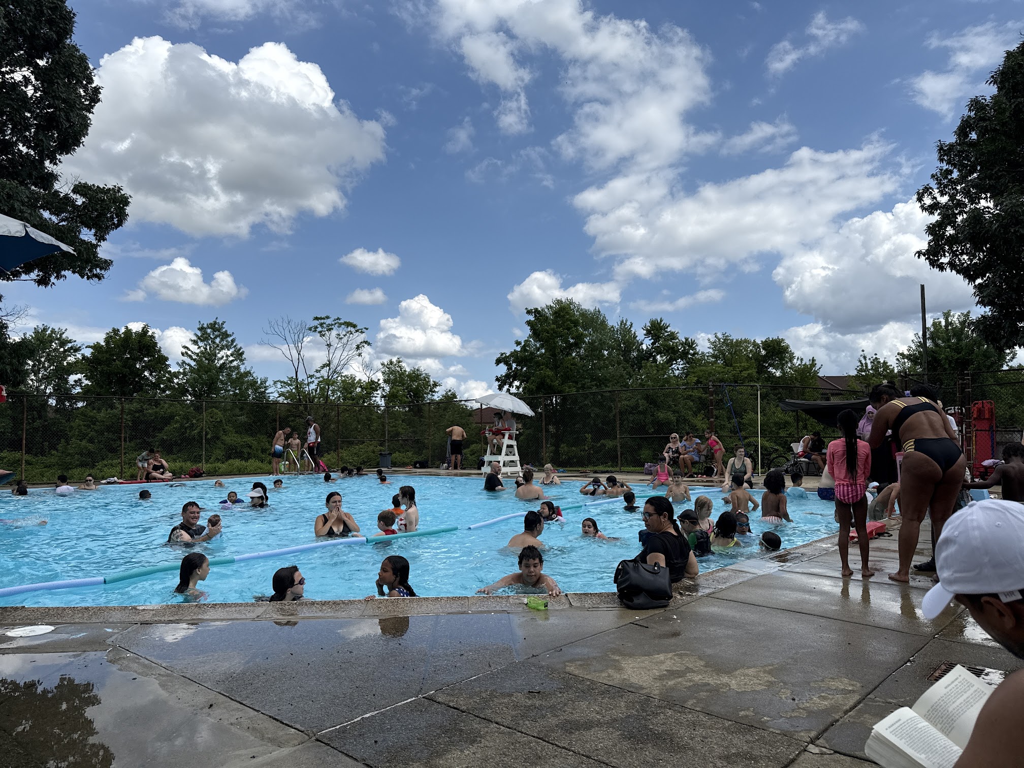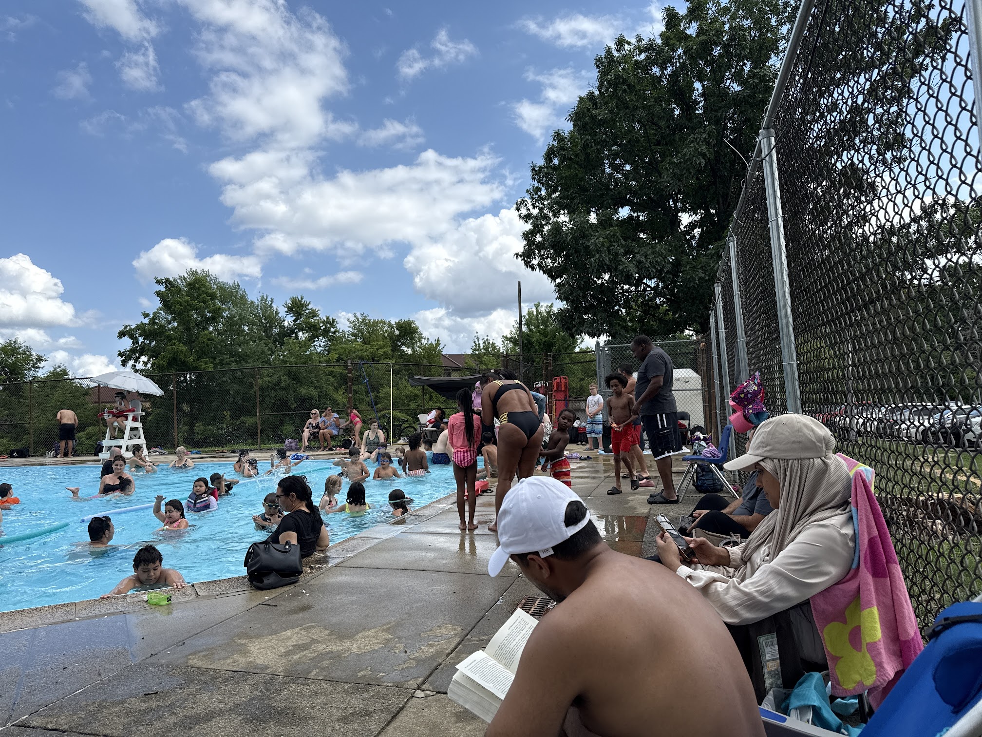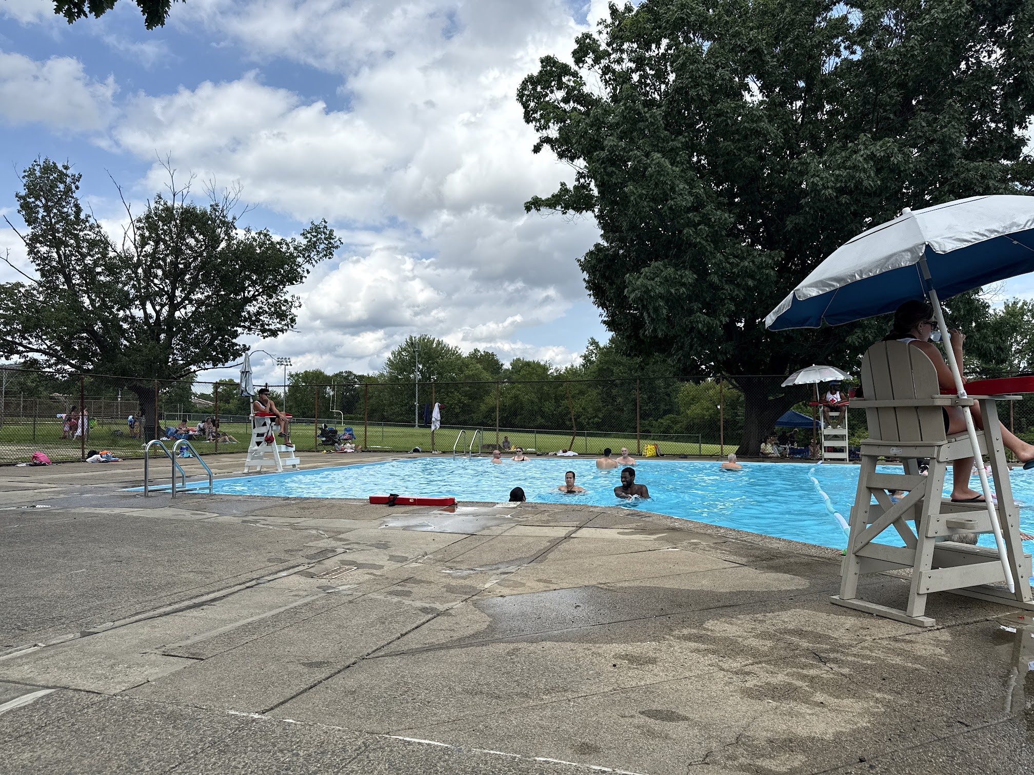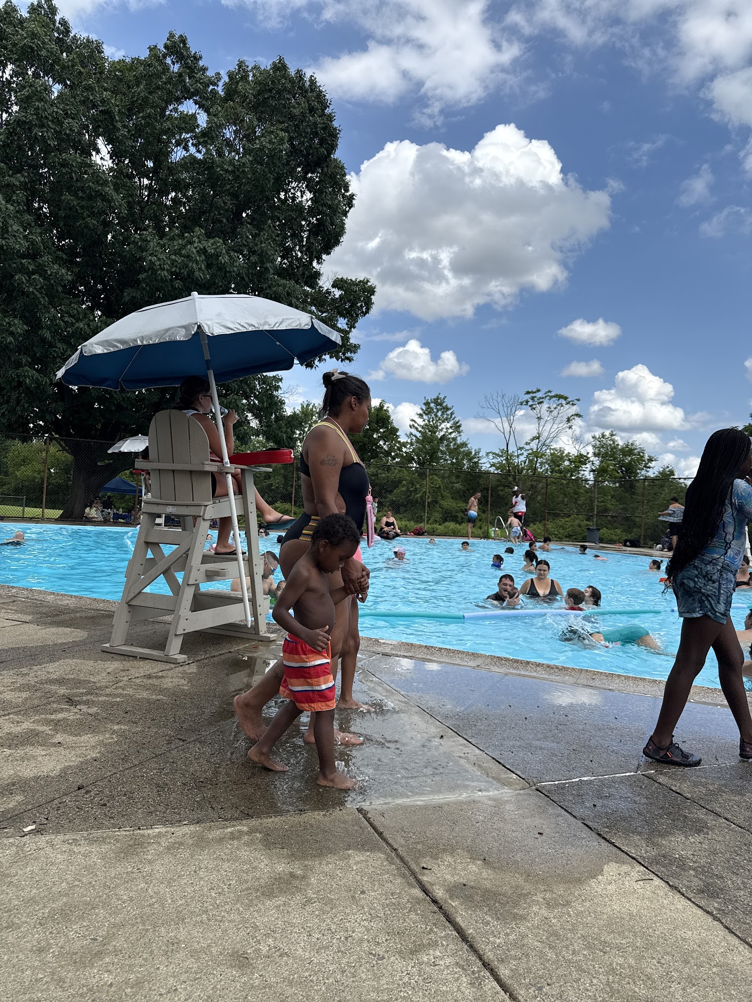 What are people saying (AI review summary)? This pool generally receives positive reviews for its cleanliness, varied depths, and kid-friendly amenities like a playground and water fountains. Patrons appreciate the friendly staff, flexible rules (allowing floats and T-shirts), extended hours, and the convenience of no ID, registration, or fee required. It's often highlighted as a good place for families to socialize. However, a major recurring complaint concerns the poor condition of the bathrooms, described as putrid, dirty, and frequently lacking toilet paper. One highly negative review expressed discriminatory views regarding the clientele and neighborhood.