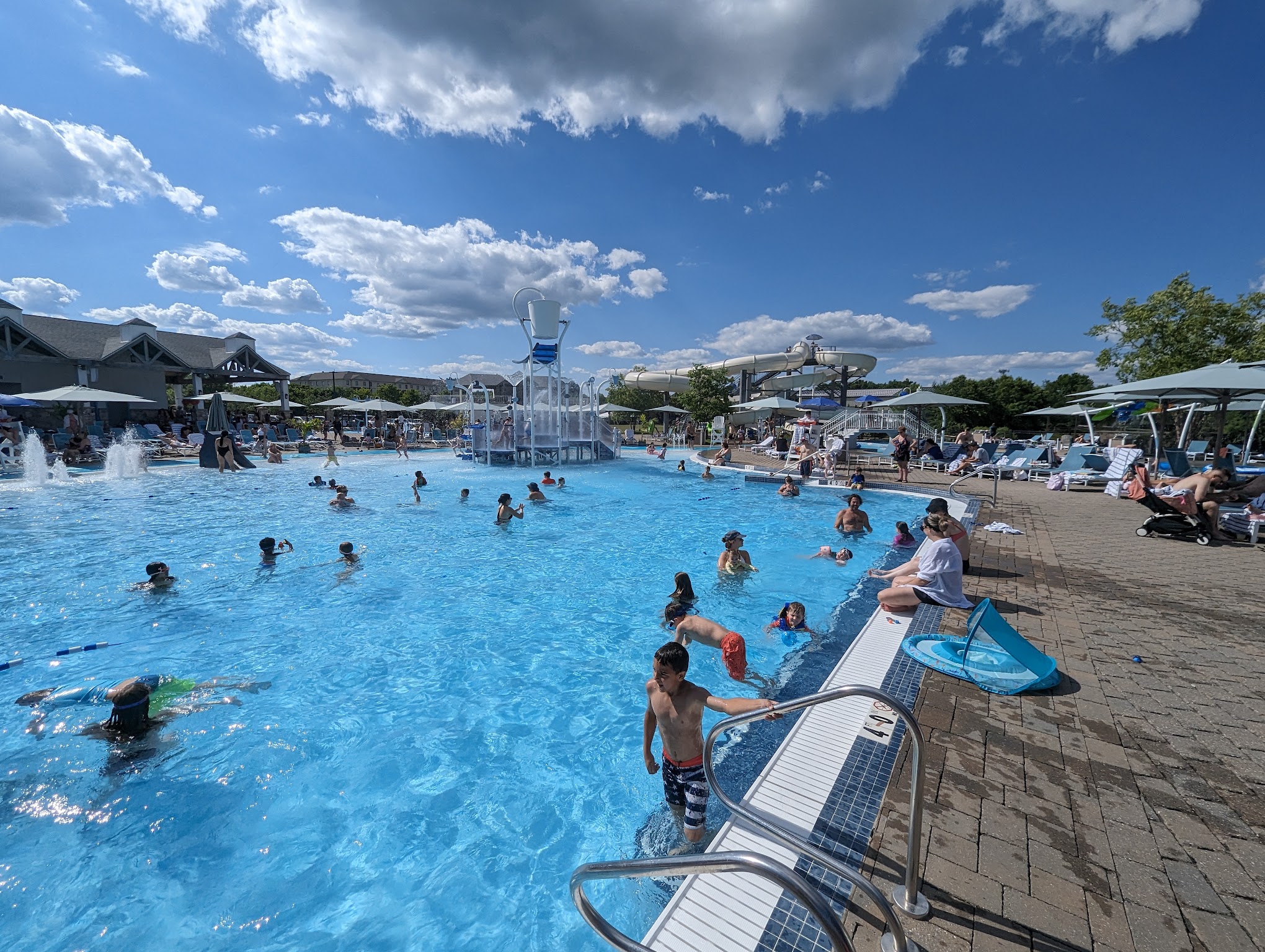 The Newtown Athletic Club's indoor lap pool is typically maintained at a comfortable 80-82°F (26.7-27.8°C). Additionally, they provide warm water therapy pools, which are kept at higher temperatures, generally in the low 90s°F (around 32-34°C), and their outdoor recreational pools are also heated for comfort.