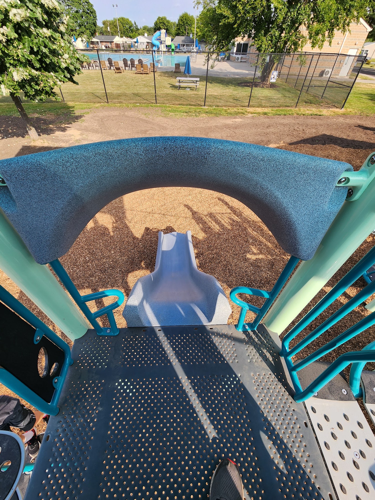 Not only is there a pool but just outside the pool there is a little playground that was recently updated. For children 2-12. Slides, swings and climbing apparatus for their enjoyment. One of the best upgrades is sunshades over 2/3 of the playground equipment. There are only a few benches to sit and watch your kids play and I do wish there was more. There are 3 regular swings, 2 baby swings and a handicap swing. The playground is handicap friendly for about half it.