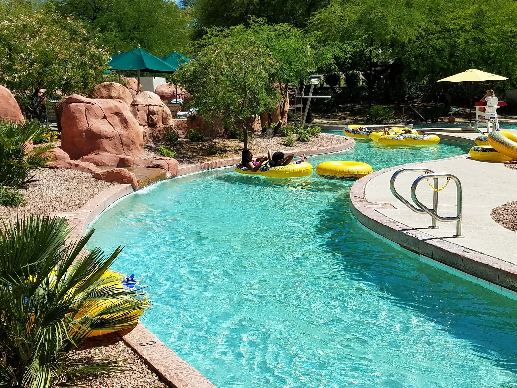 The pools within the Oasis Water Park at Arizona Grand Resort & Spa are heated seasonally to ensure a comfortable swimming experience for guests throughout the year, especially during cooler months. Specific temperature ranges are not explicitly published, but they are maintained for guest comfort.