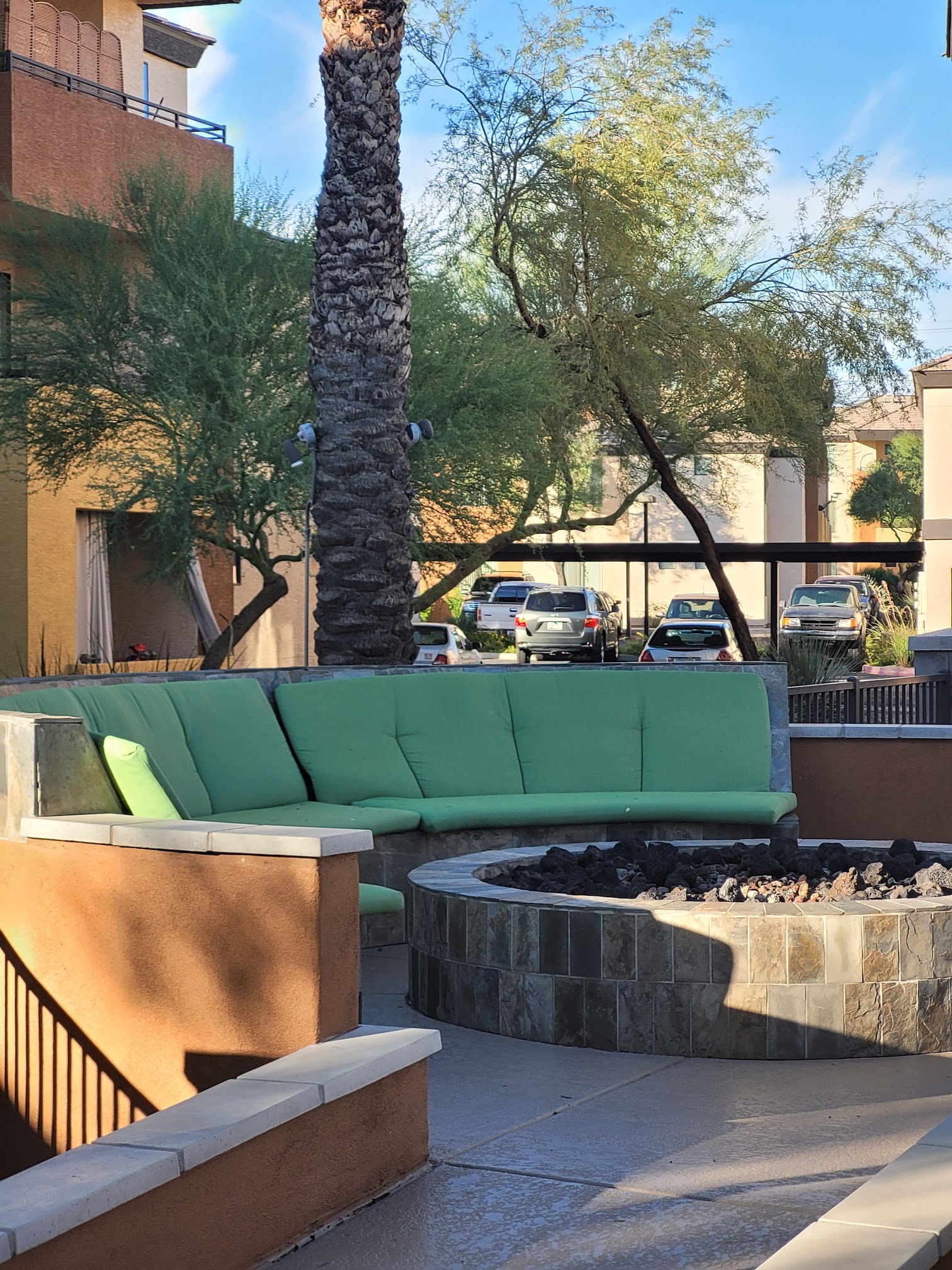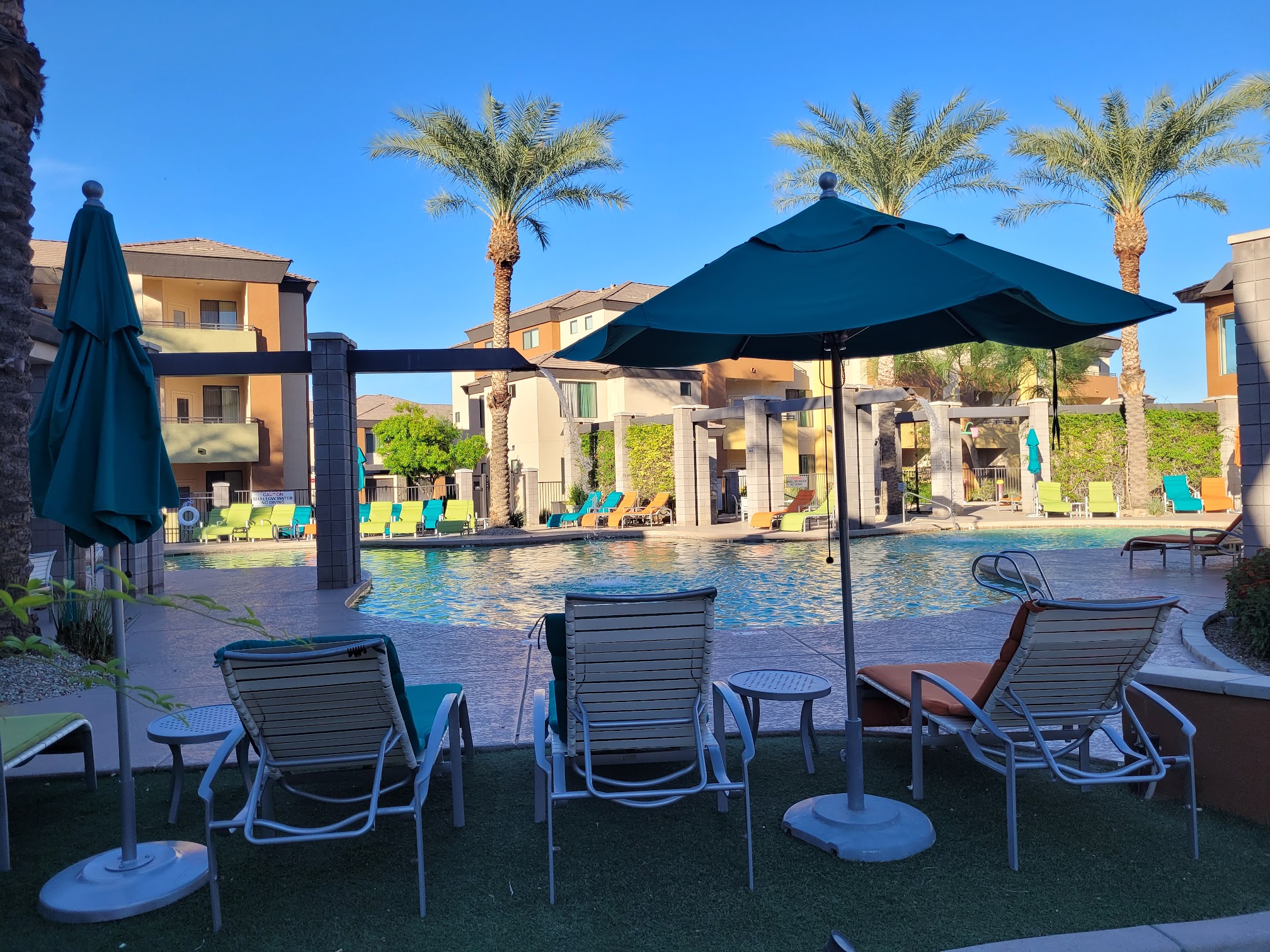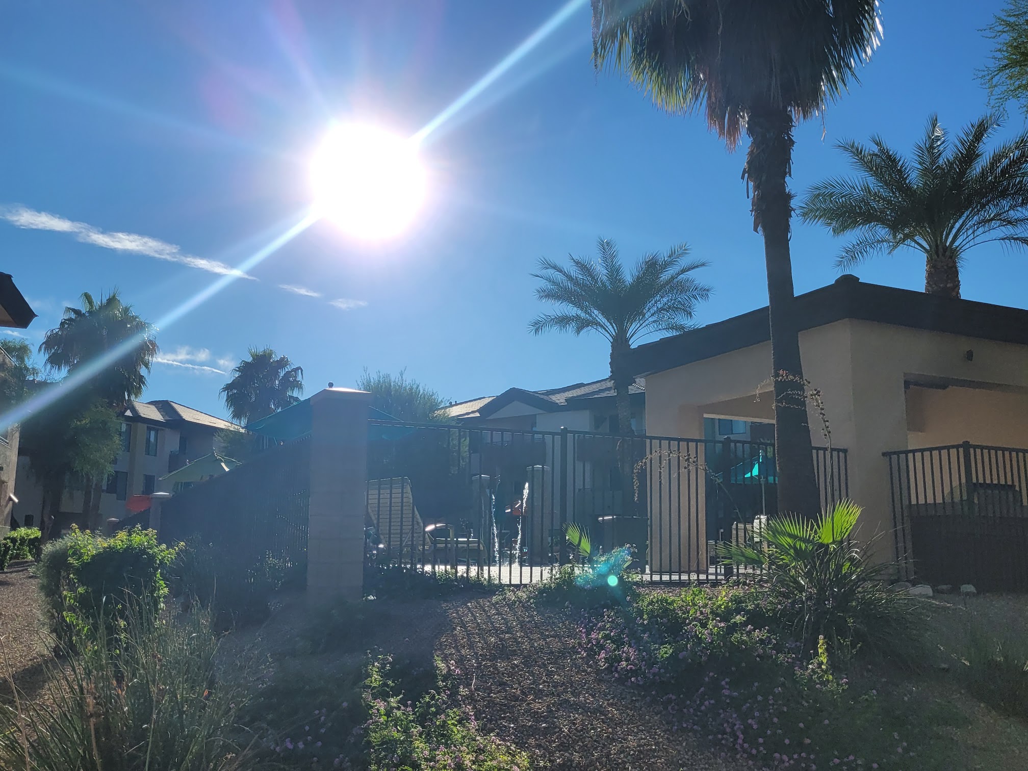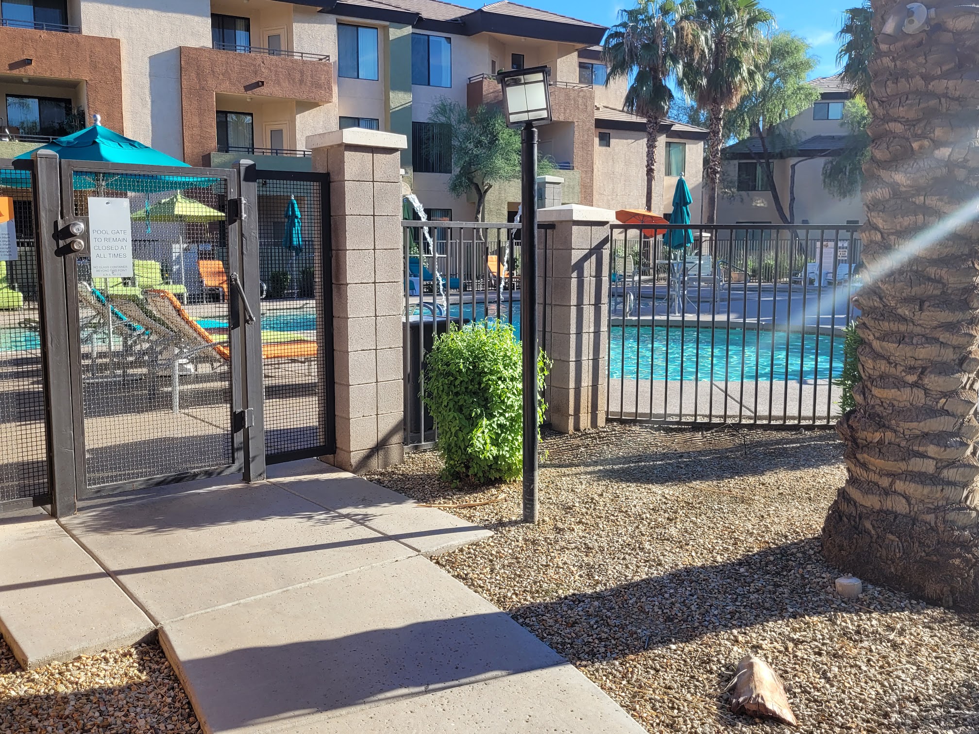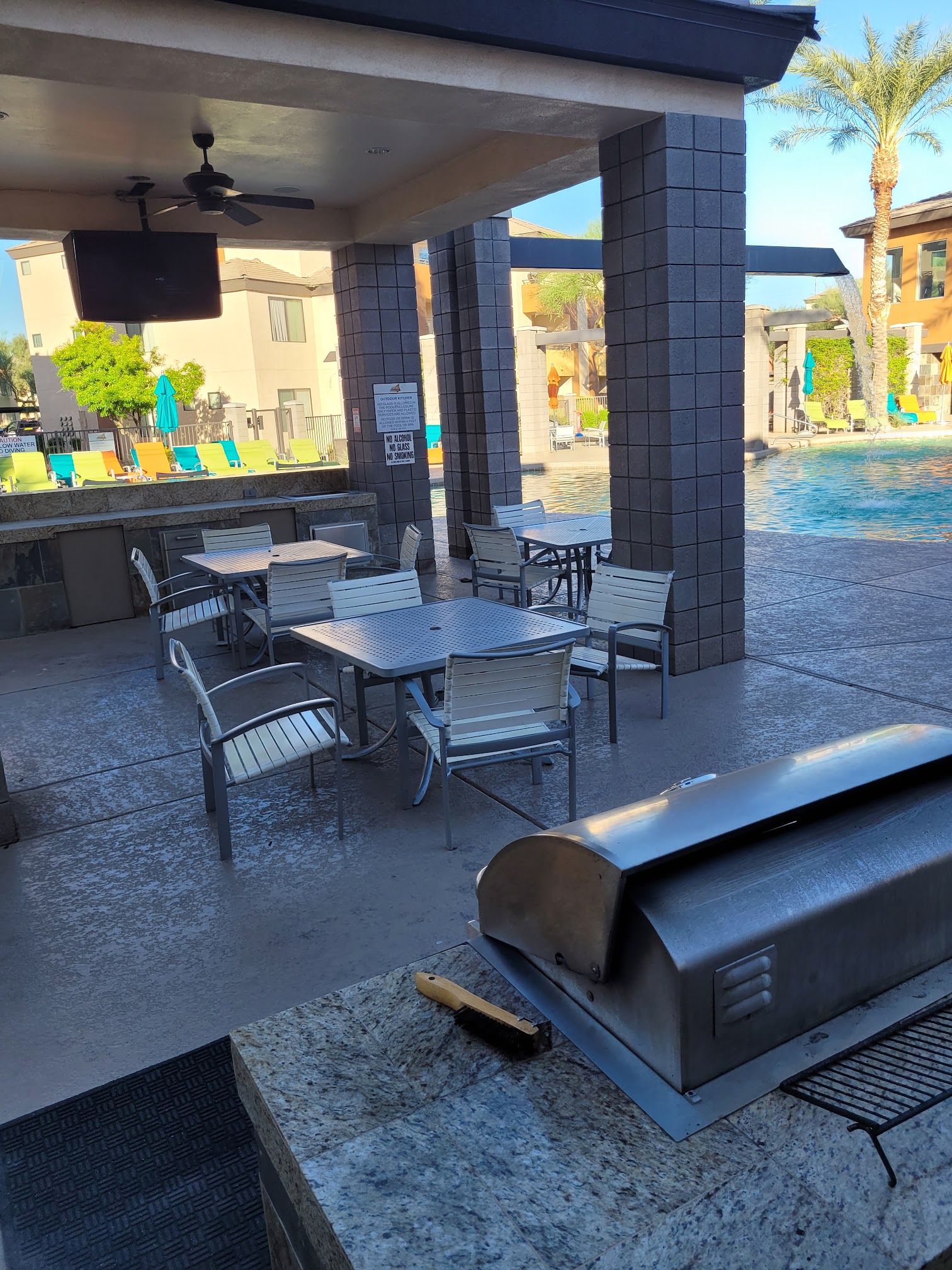 Very big and clean complex. Propane grills all over grounds. Beautiful pools, popular gym billiards club house splash pad & kids pool Jacuzzi with fireplace landscape. Quiet safe and I loved it!!! HIGHLY RECOMMEND