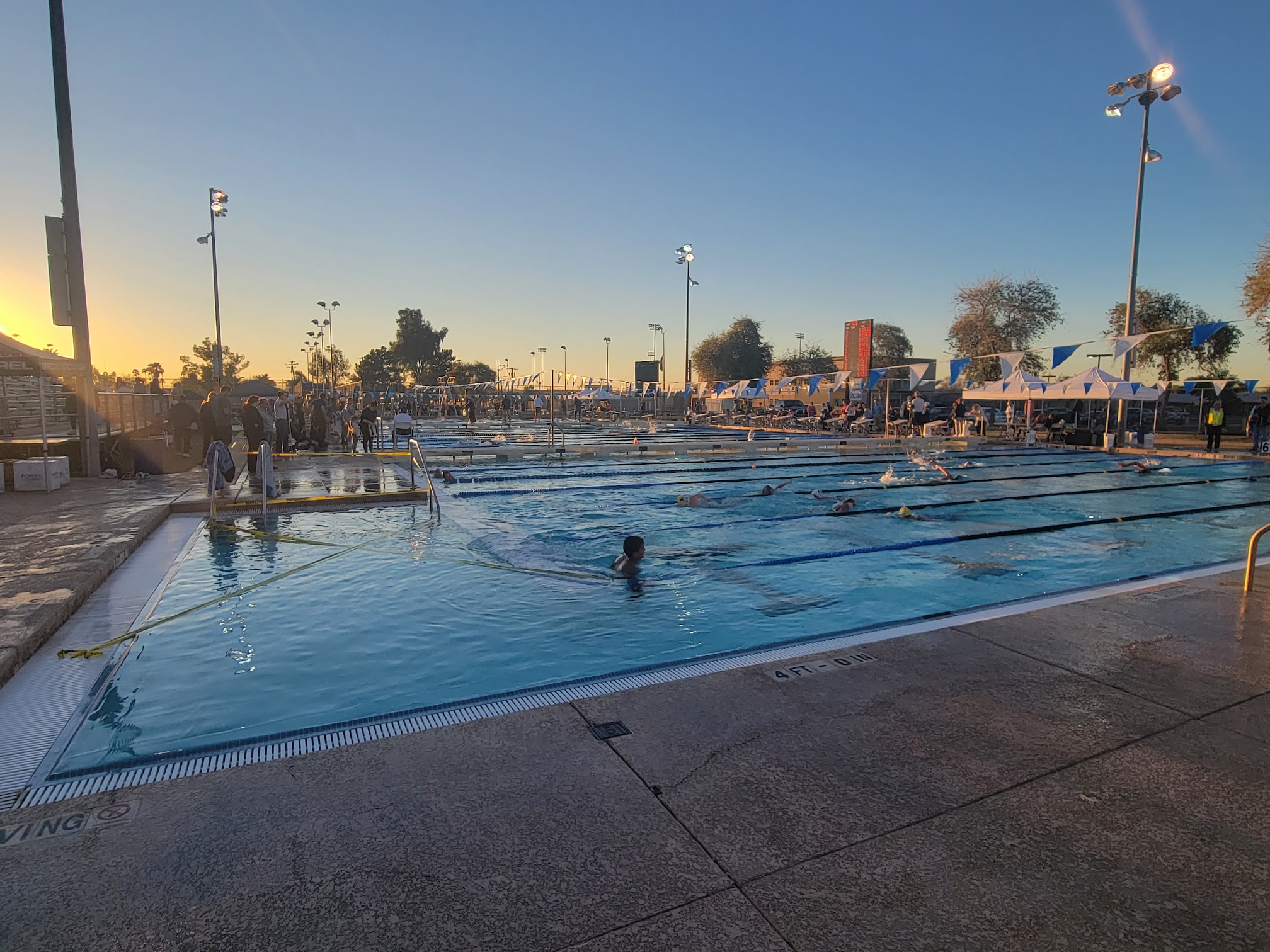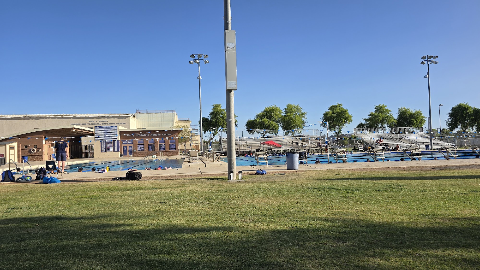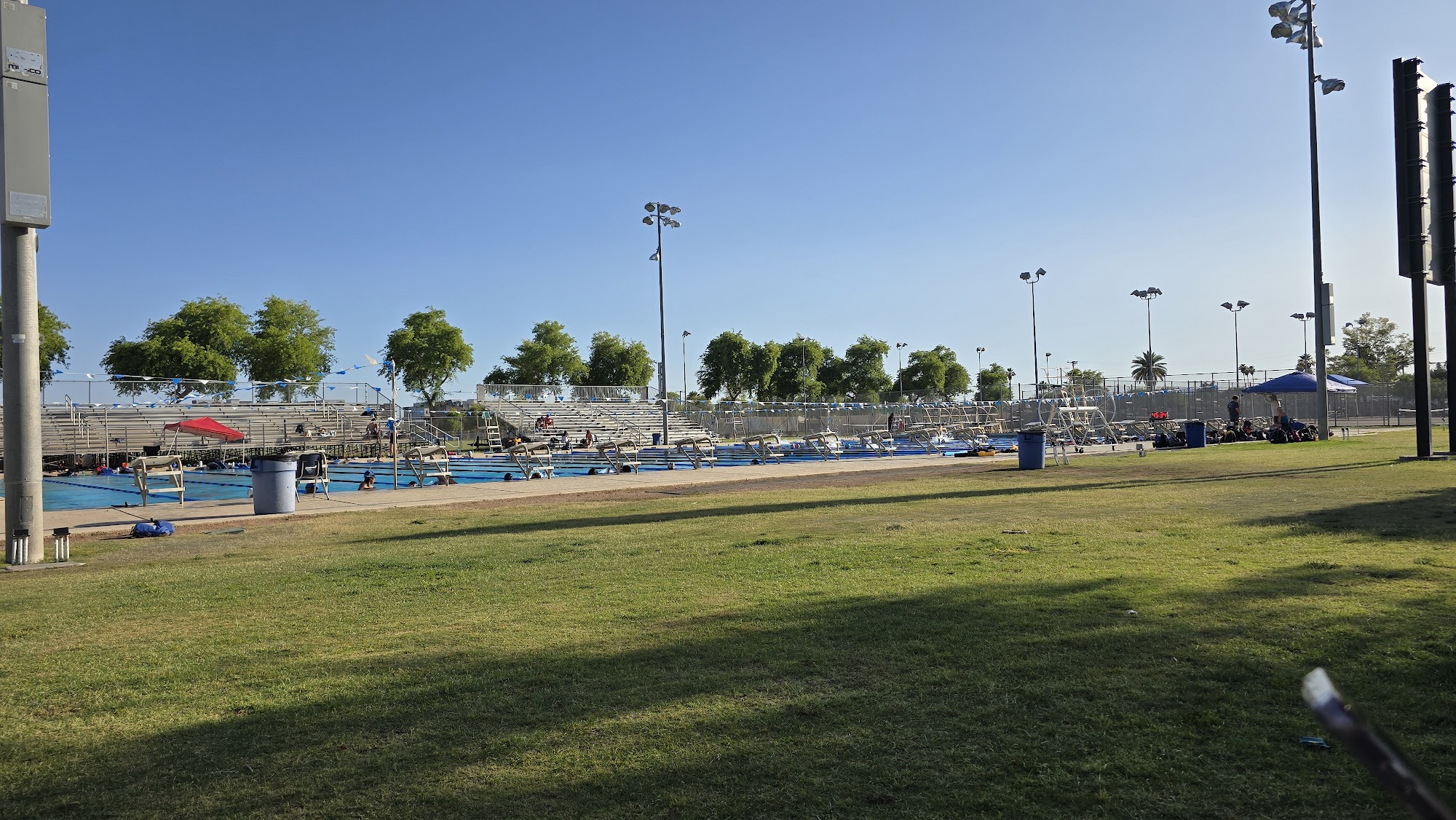 Decent pool. Can host both short course and long course events. Warmup pool gets crowded during large meets Not very much shade and depending on how the swim meet hosts set up their shade tents, sometimes you have a great unobstructed view of the meet, other times you can't see over the tents. During the early spring or winter events the rains can make this place a mud pit pig sty. Be prepared to bring lots of towels and boots during those events.