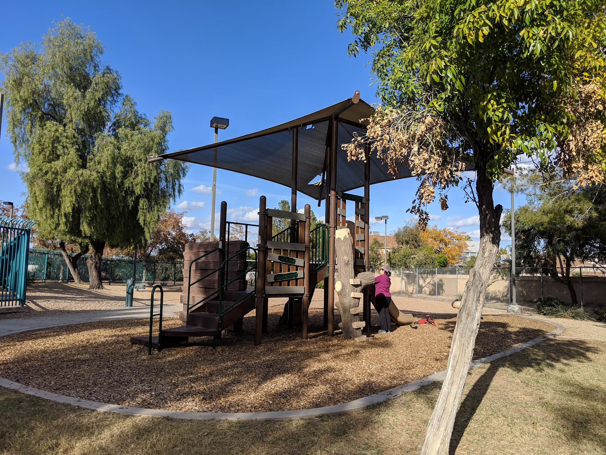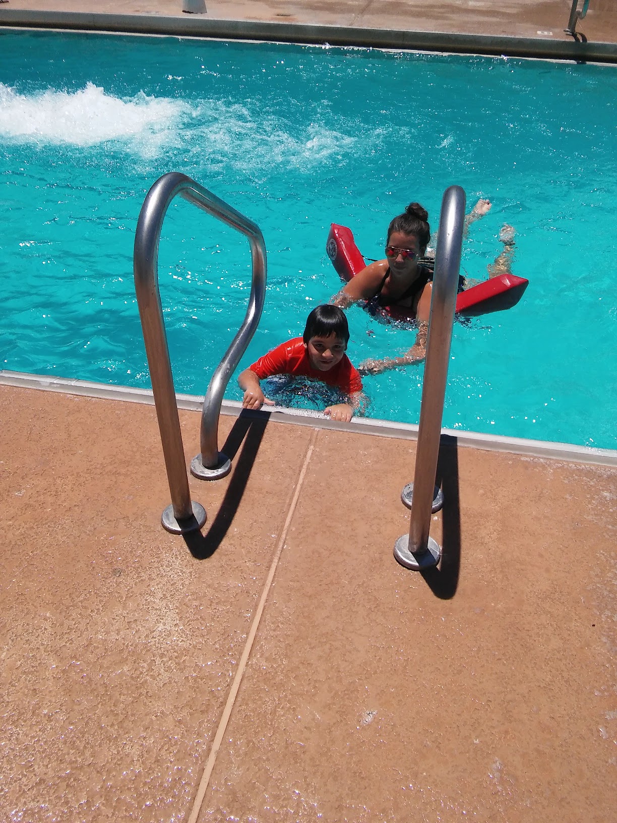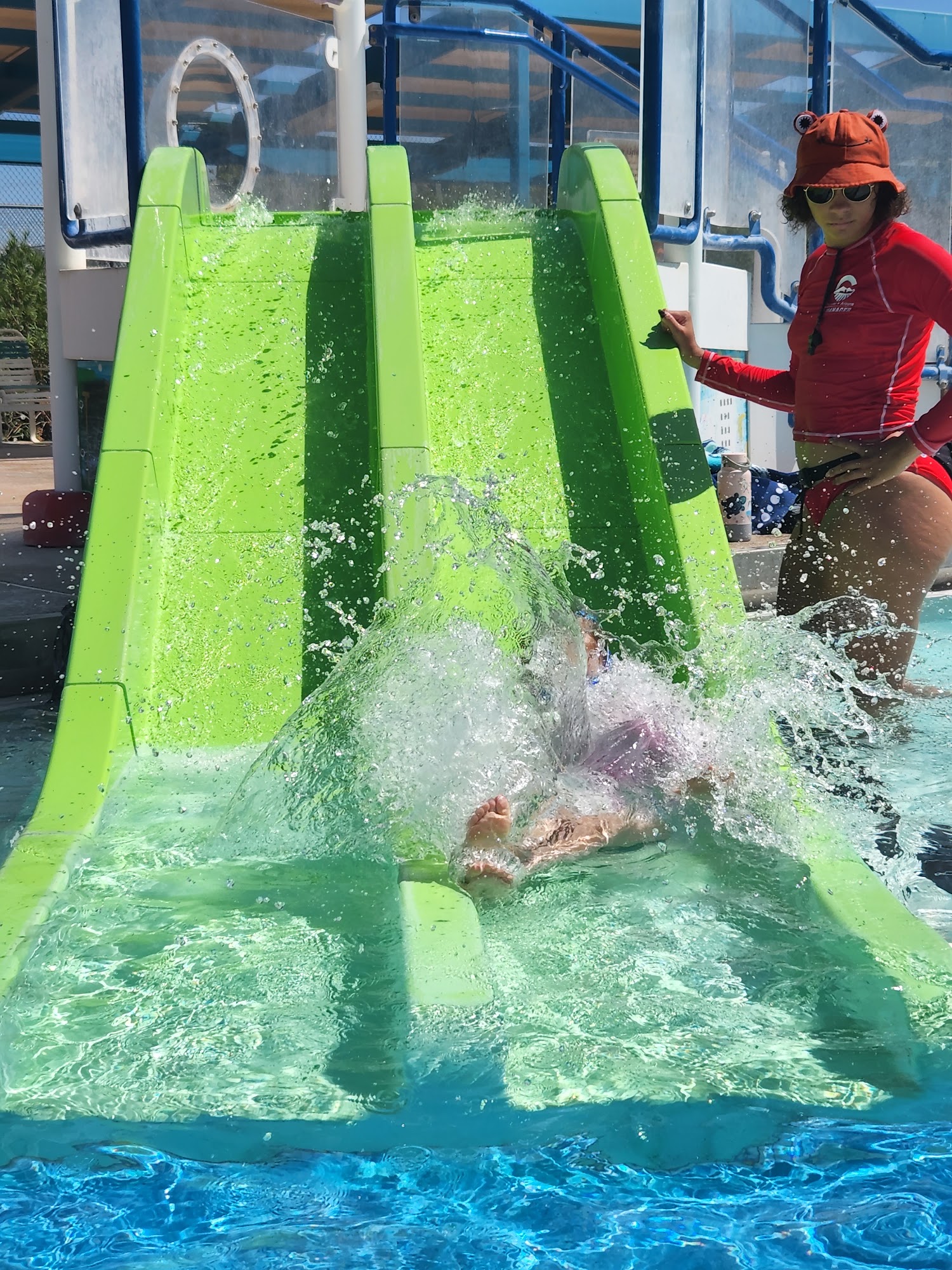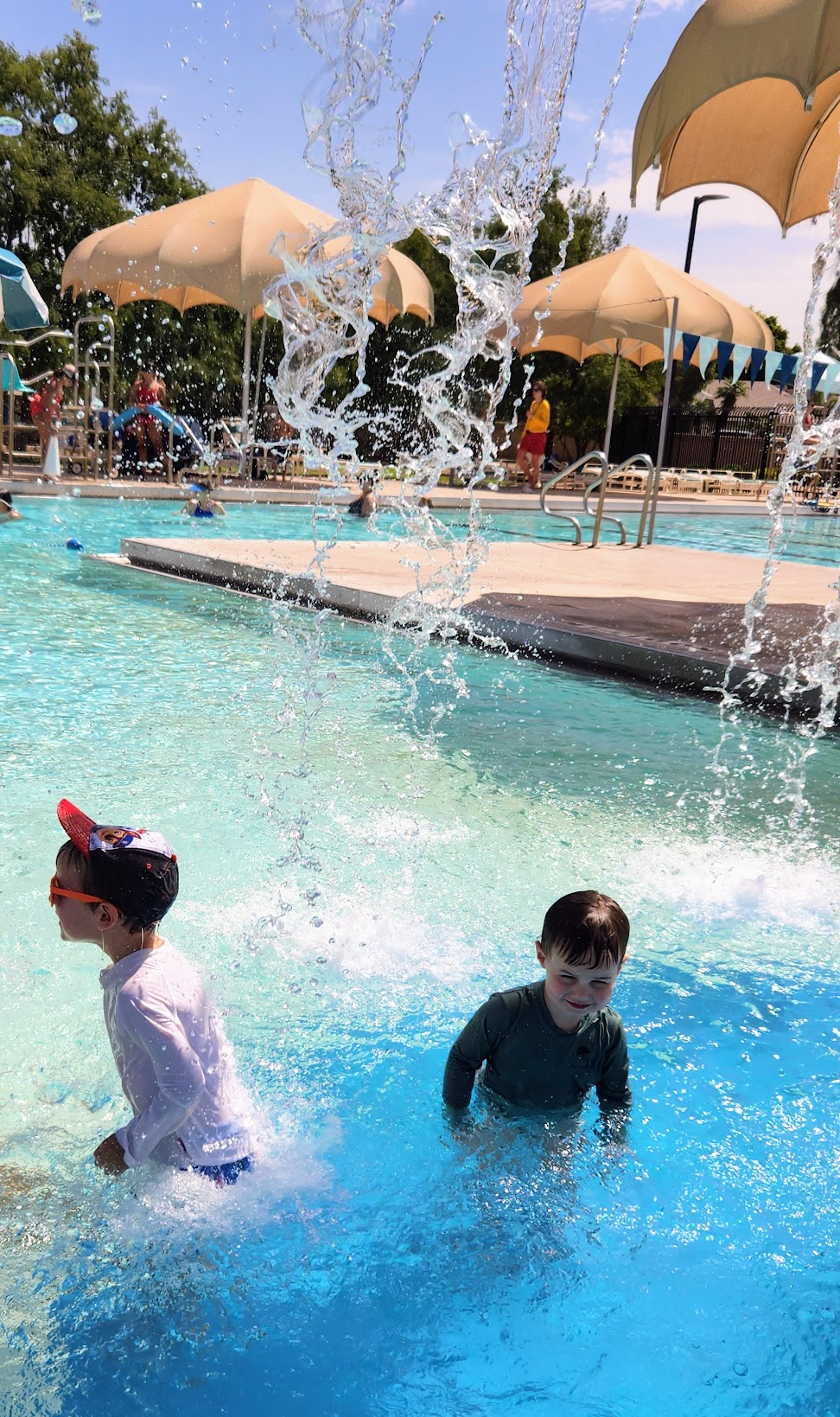It's a Good Place to let the kids swim, and there is a lot of shade to hide from the sun 🌞. They have a two-story water slide for little kids, with a landing pad that allows kids to stand up out of the water, and another one for bigger kids that drops you in the deep end of the pool.