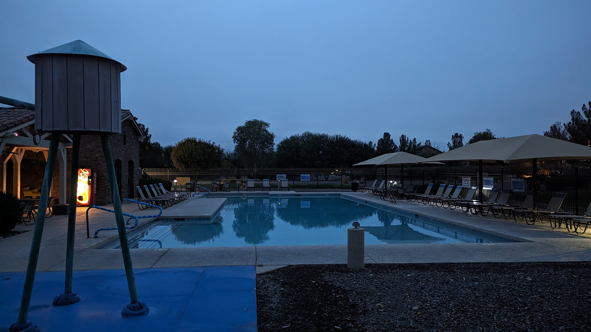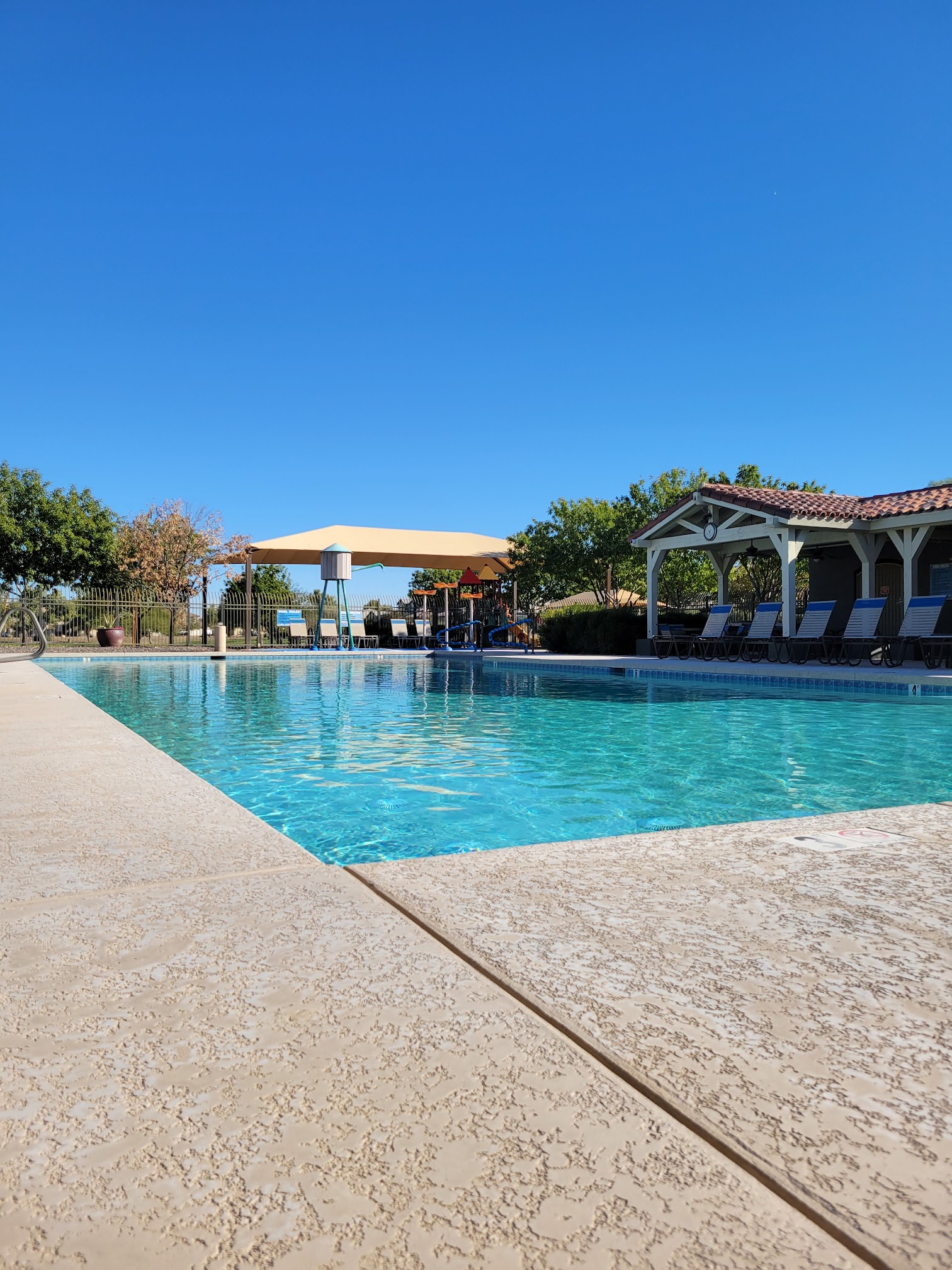 Clean pool with shade and places to sit! also a splash pad, park, and field for the kiddos. No lifeguards on duty and key card is required for entry fyi! EDIT: also wanted to clarify that this pool is heated for the colder months!!