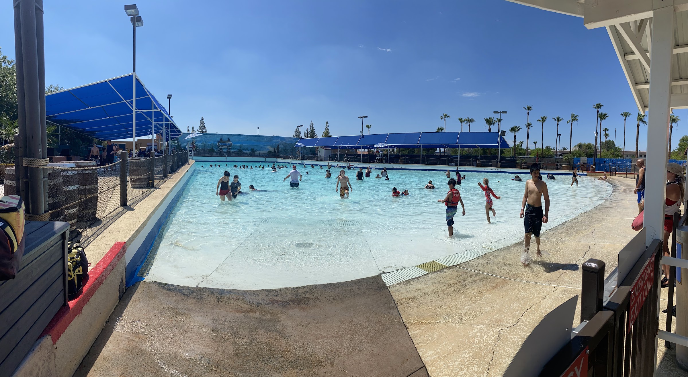 Very busy but expected with the heat. Always have so much fun here. Food concessions were not good. The wait was forever literally so Just an FYI eat before going. Other than food concessions it was a blast.