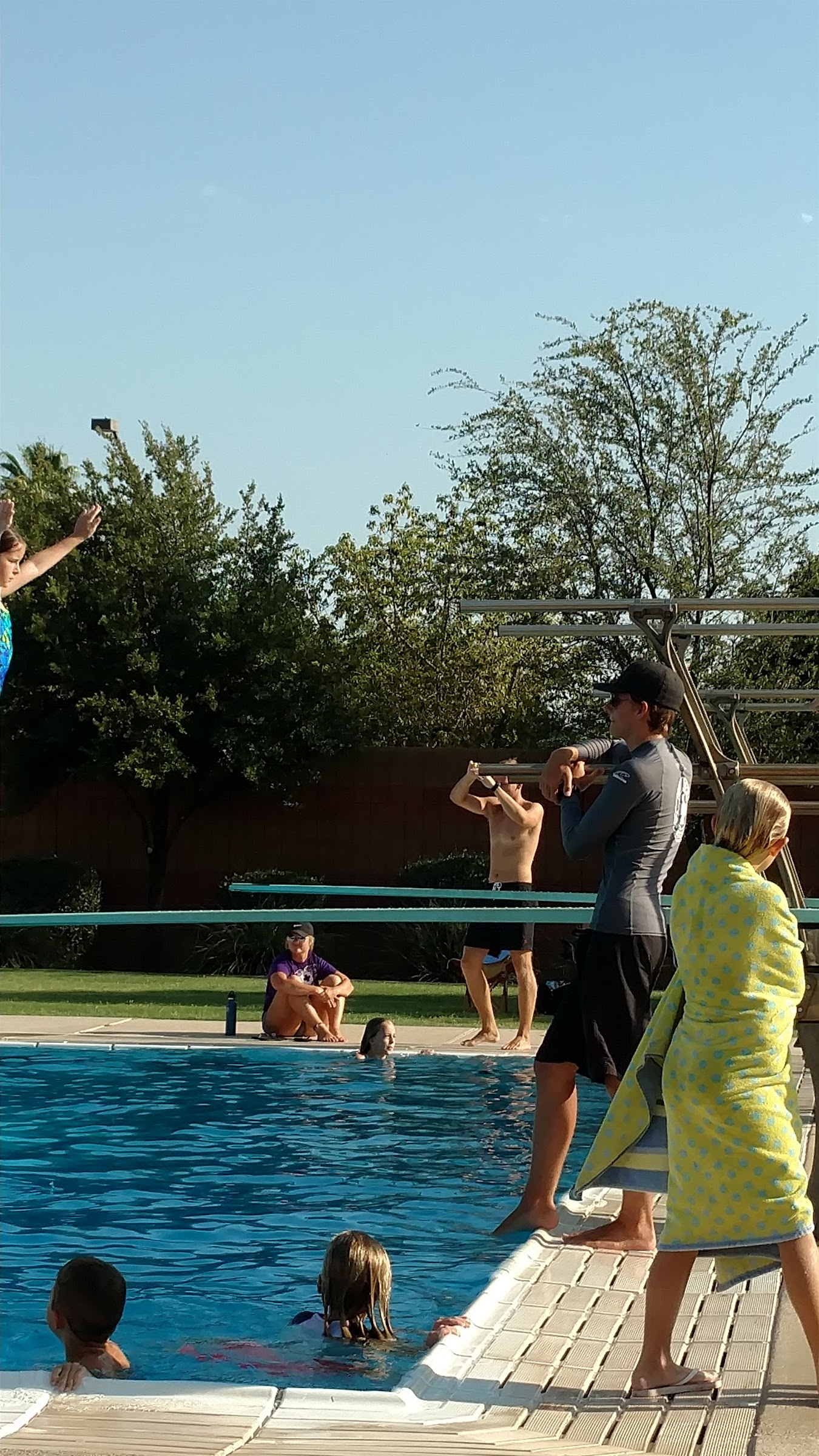 Good public pool. 2 diving boards, and a baby frog slide. No other playground equipment, oh there might be one mushroom fountain. Not our favorite pool, but close to our house. We did swimming lessons here. They have a couple bleachers with some shade for parents.
