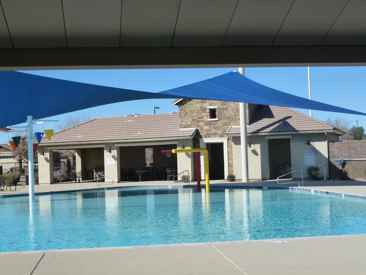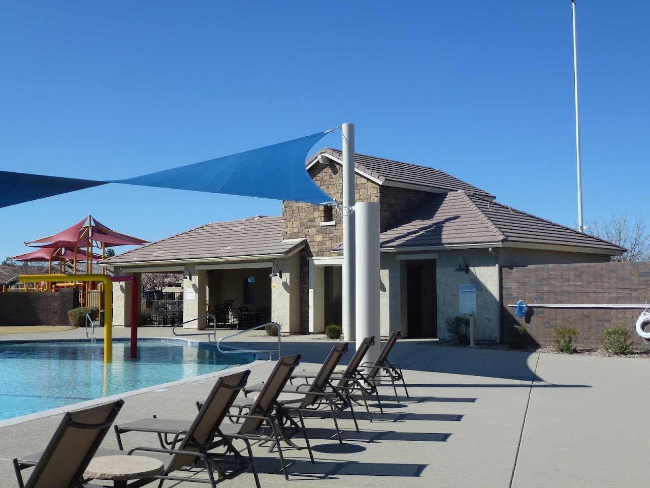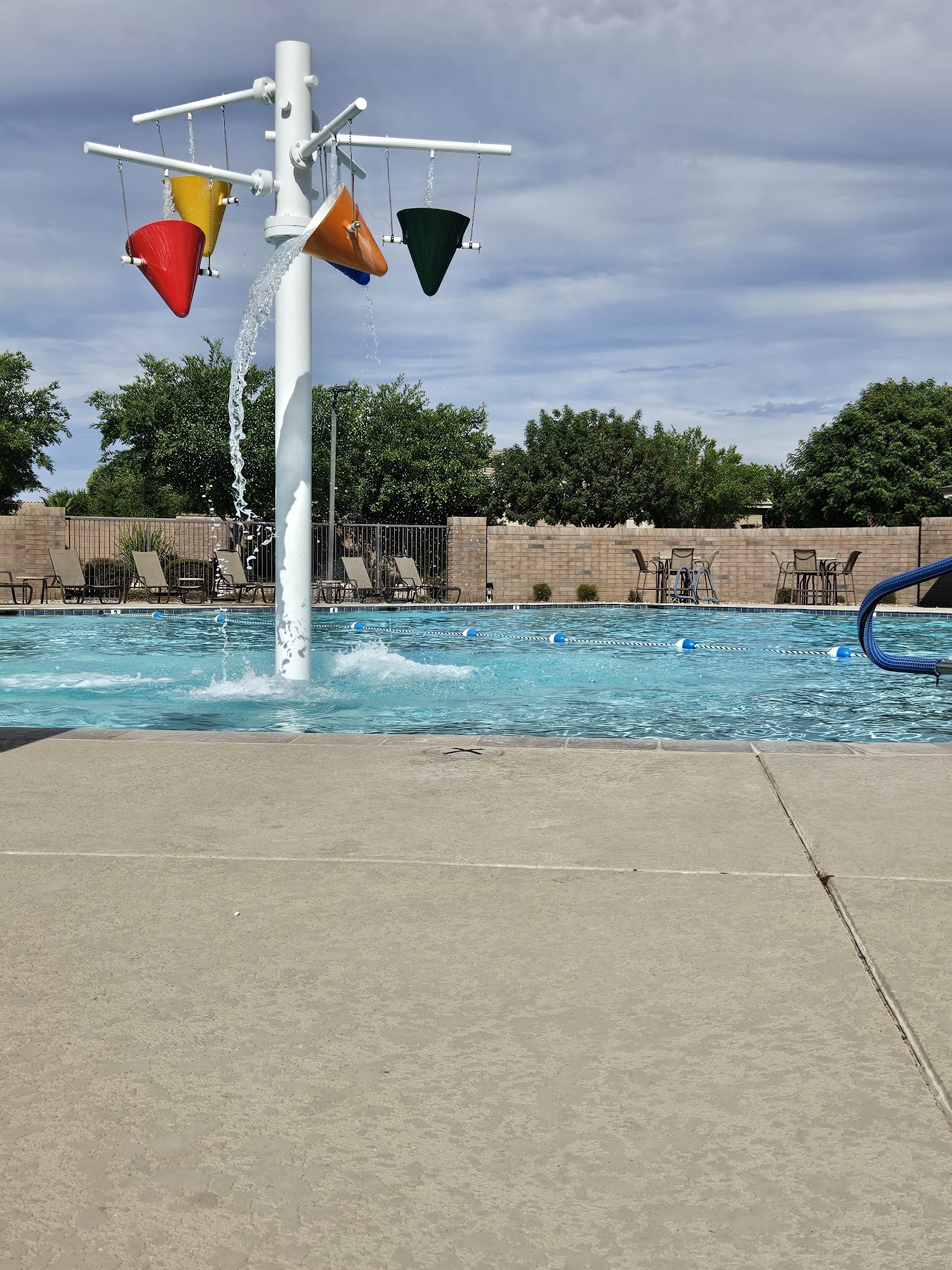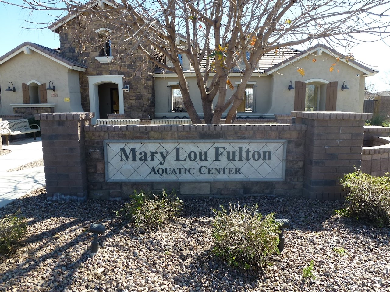 The Mary Lou Fulton Aquatic Center, located at 20355 E Arrowhead Trail in Queen Creek, AZ, is a modern community aquatic facility that opened in May 2023. As a key part of the Queen Creek Station development, it offers a wide array of recreational and fitness amenities, including an 8-lane lap pool, a zero-entry leisure pool, two water slides, a current channel, a climbing wall, diving boards, and a splash pad, serving as a hub for aquatic activities in the area.