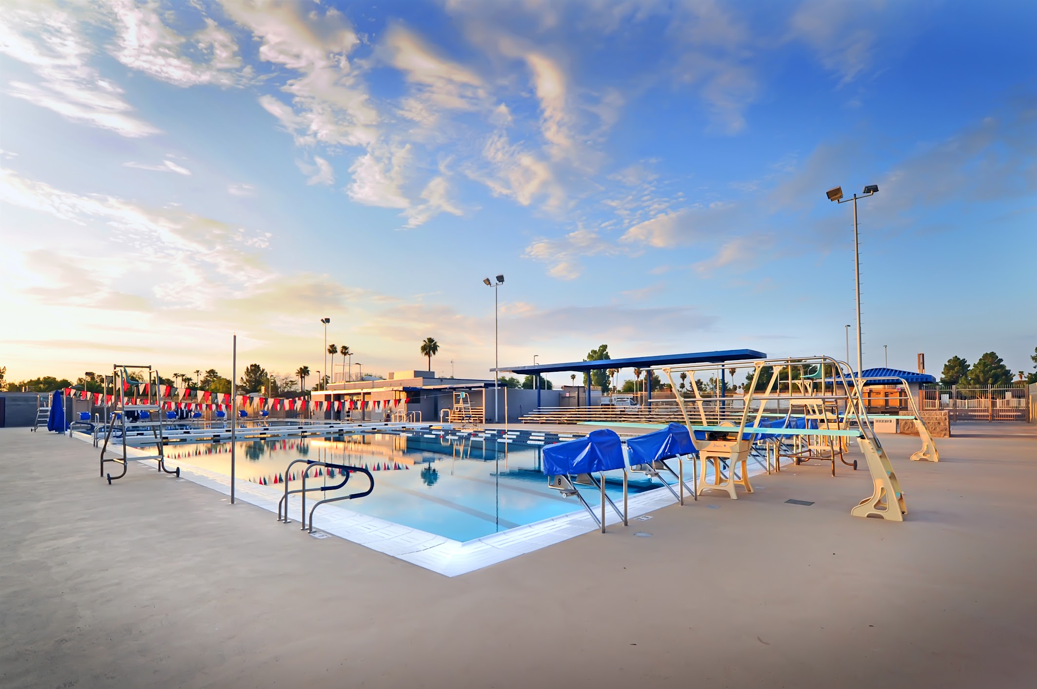 A well maintained city of Tempe pool right by the McClintock High School. Very clean! Not crowded and it's great for lap swimming. Has two water slides for kids.