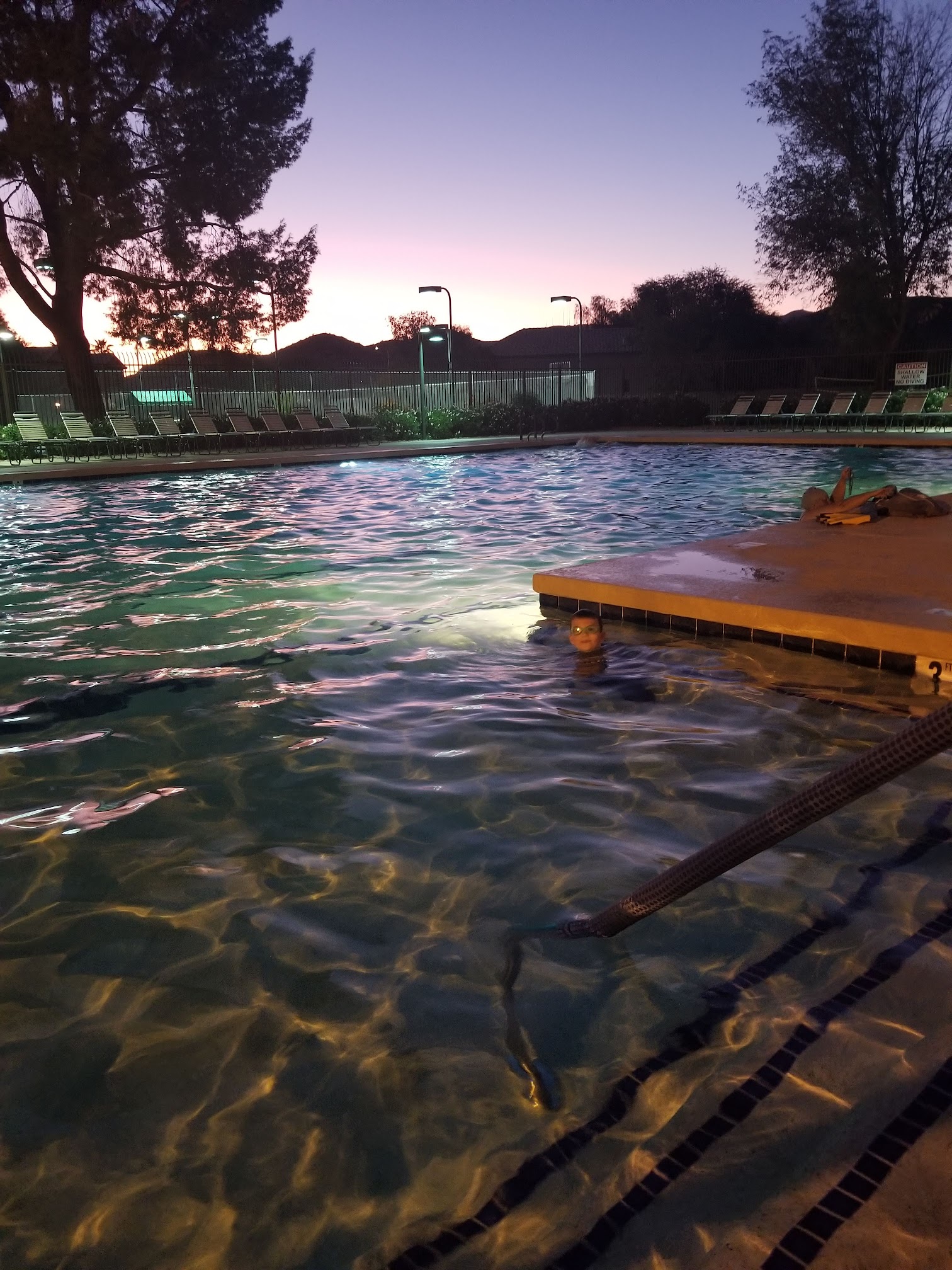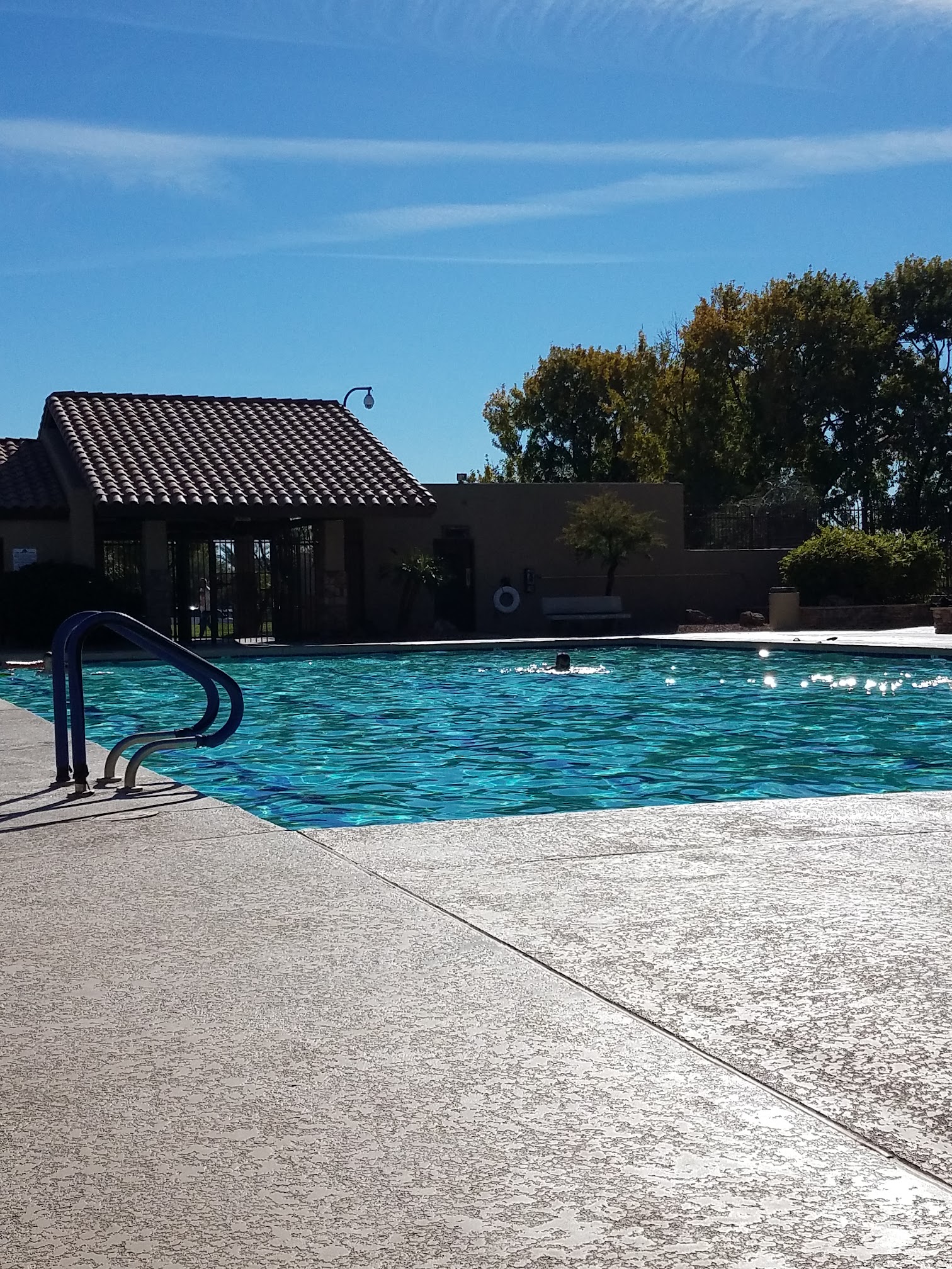 I like this pool, it is very clean, it has swimming lanes and is large pool with a jacuzzi and a shaded kids pool. There is an outdoor shower and restrooms for your convenience. It is nestled by a hiking trail, in the Ahwatukee Lakewood/Mountain Park area with a park right behind it, with a tennis court, and basket ball court, plus a kids playground. The pool is for Mountain Park residents, and the gate automatically locks when closed.