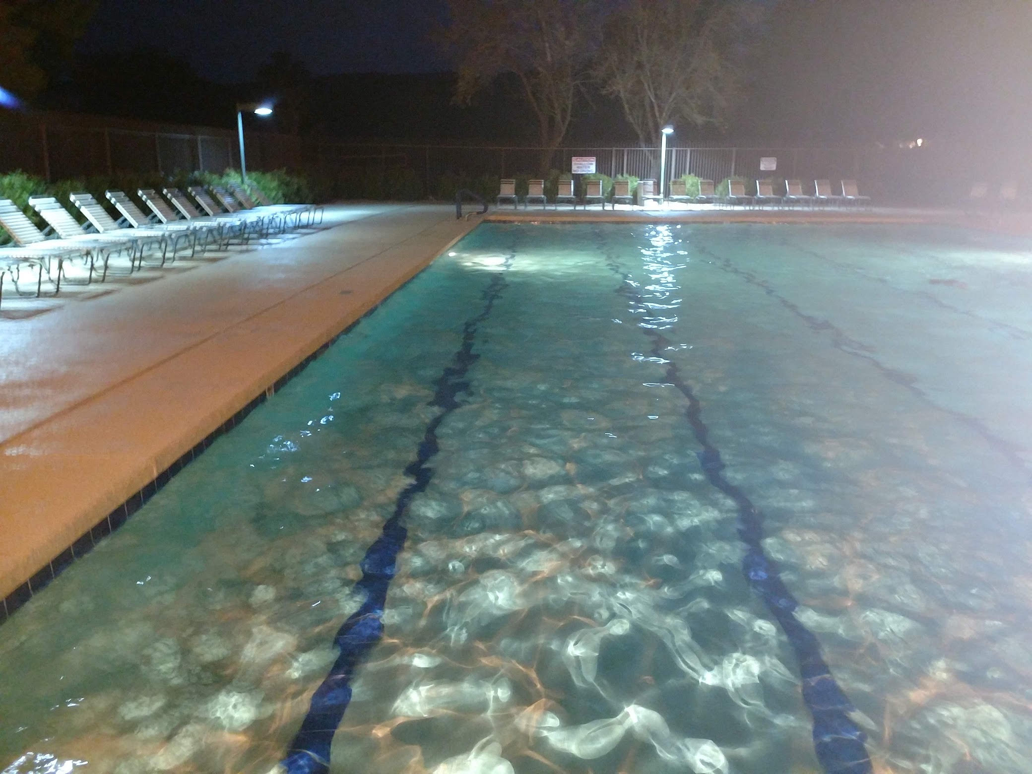Good pool to keep fit in. Water is a little too warm for good lap swimming. Great if you are just playing around or wading but vigorous swimming causes you to overheat. The water should be refreshed too. Tastes like it has been in the pool for years (yes I know you are not supposed to drink it!). No lane lines or wave dissipation so it can get a bit open-water rough if a number of people are swimming at the same time. But hey, come on in, the water is fine!