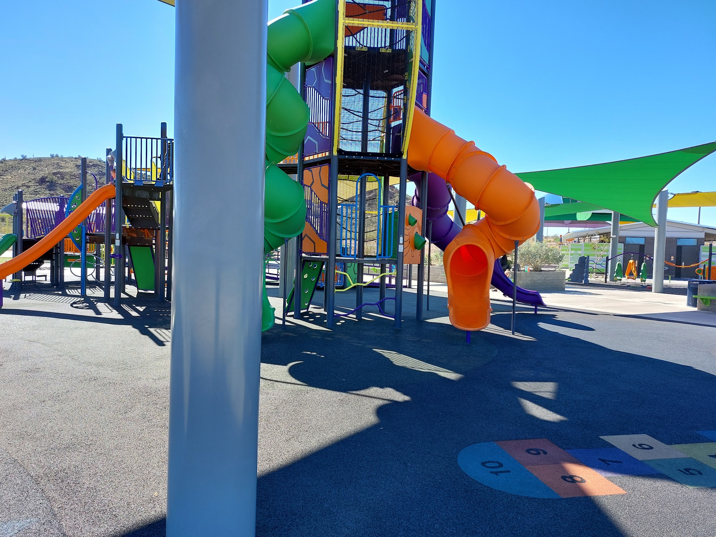 What are people saying (AI review summary)? Paloma Park is generally well-received, described as a nice and impressive park with distinct play areas for both younger children (toddlers) and older kids, featuring various slides, a teeter-totter, and a small rock wall. The splash pad is popular and enjoyed by all ages, and restrooms are consistently reported as clean and well-maintained. The park also includes a lake where fishing is permitted. However, significant concerns were raised by multiple reviewers regarding a severe bee problem, particularly near the splash pad, which has resulted in stings and visitors leaving early. Another common complaint is the late opening of the splash pad (10:00 AM), with requests for it to start earlier due to morning heat. One reviewer also noted issues with parental supervision, observing older children bothering younger ones at the slides.