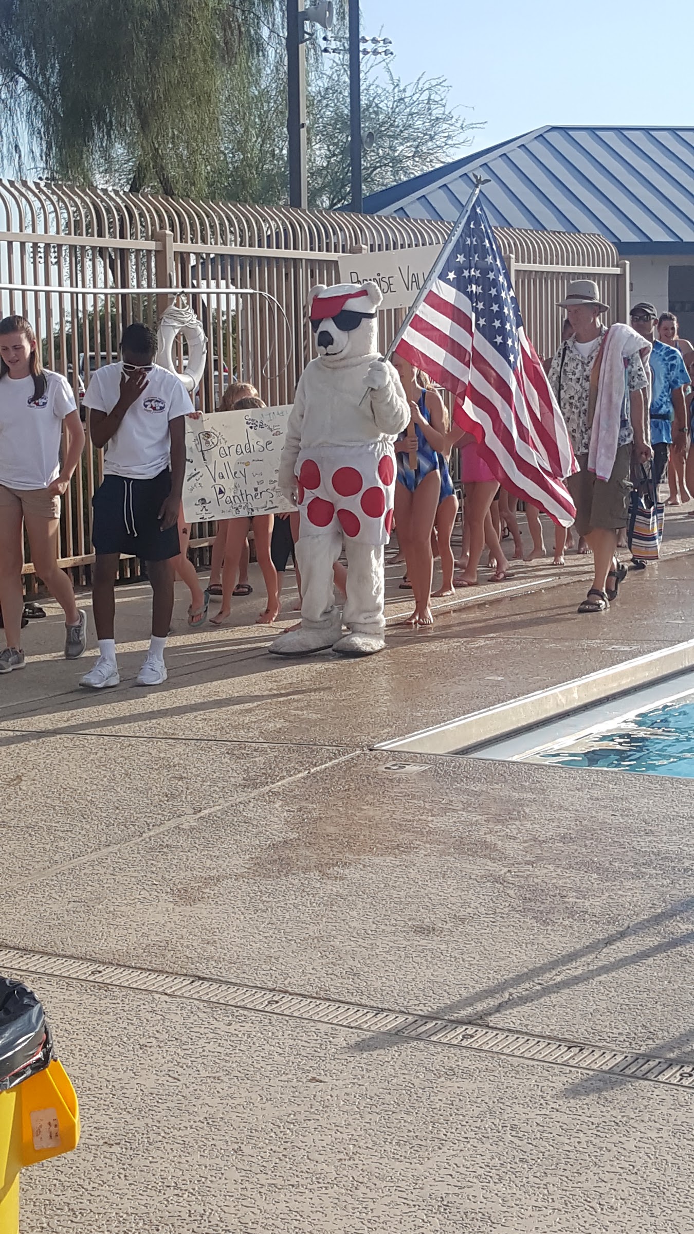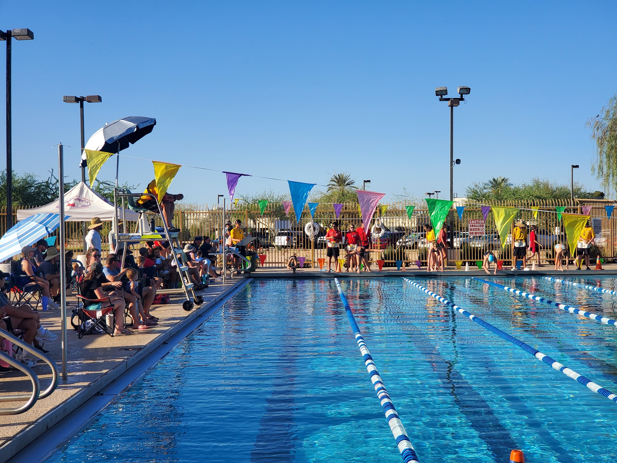 Nice 25 m lap pool. U have to show u can swim then get a yellow band. Diving boards are a separate pool. Then have a shallow side for kids with fountain n slides. Reasonably priced make reservations online