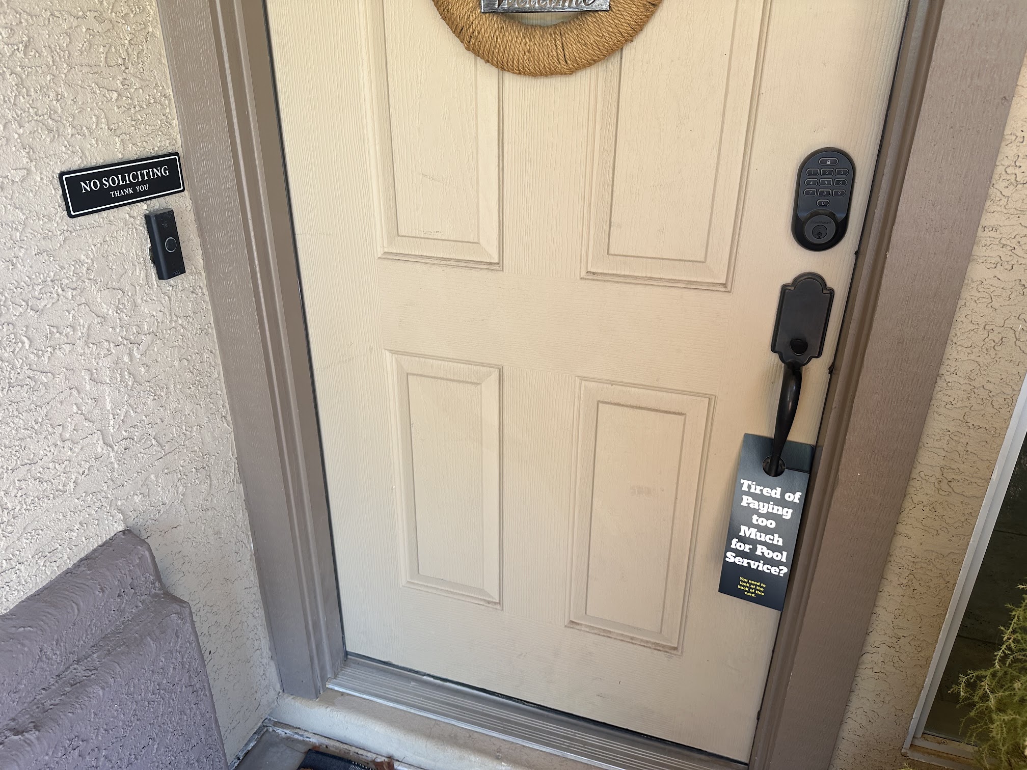 As you can see in my picture, I have a “no soliciting” sign over my doorbell yet I still got a soliciting advertisement on my door from Princess Pools. I personally would never do business with a company that does not respect homeowners wishes and privacy. It shows they care more about their bottom line versus their customers happiness.