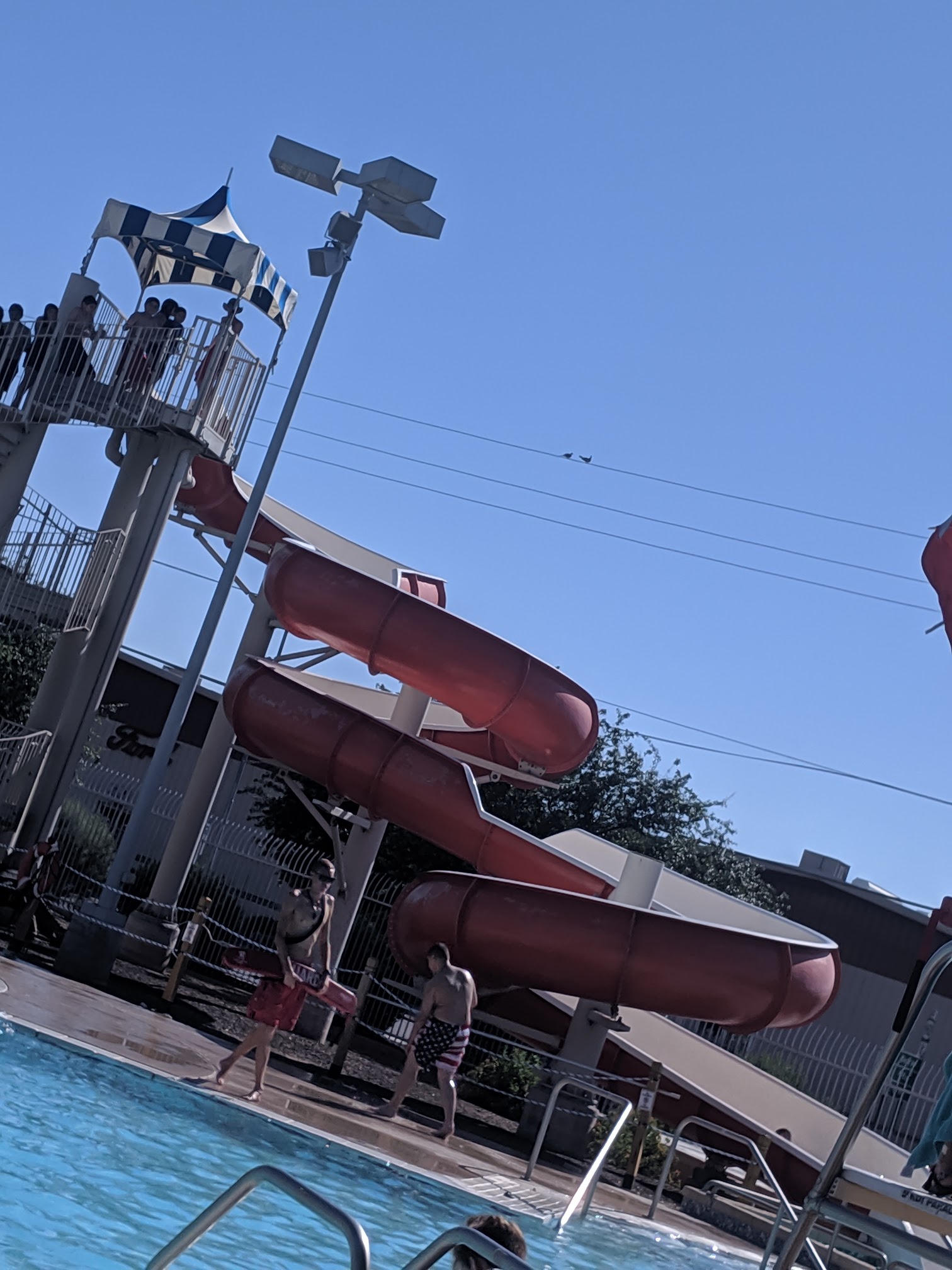 Nice pool! The lifeguards are great mame sure if you bring your own life jacket for toddler, its life guard approved, and no food allowed inside pool areas. Water bottles are okay.