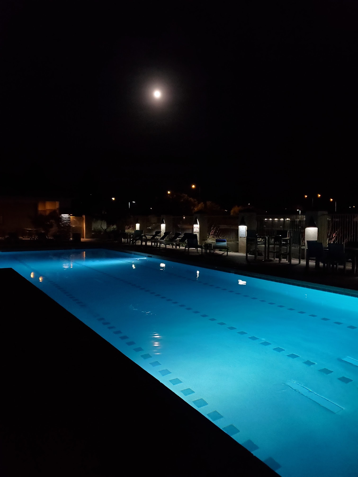 Heated pool and spa. Lap lanes. Covered seating with chases. Kids hours 4-6 pm. Residents only.