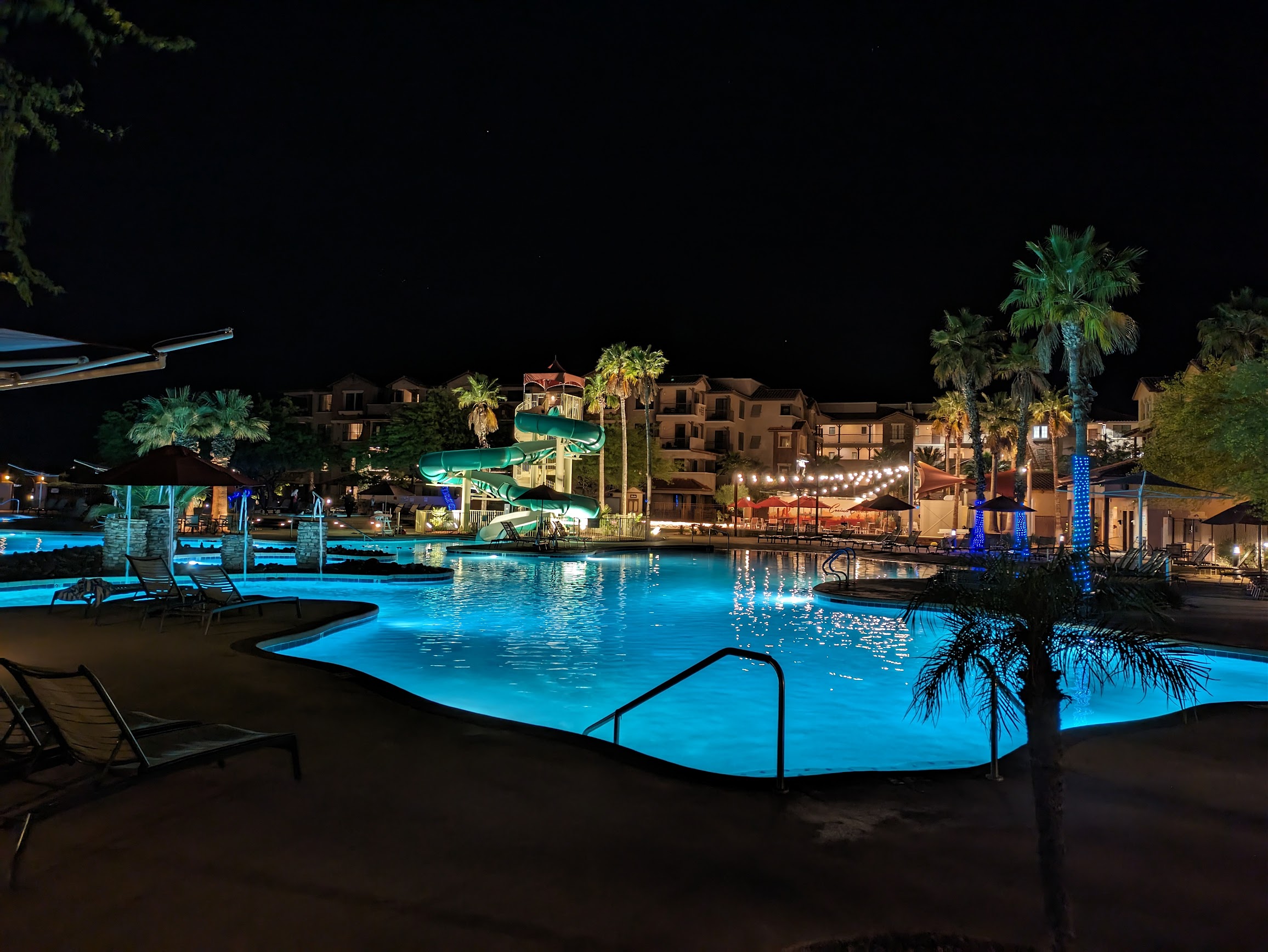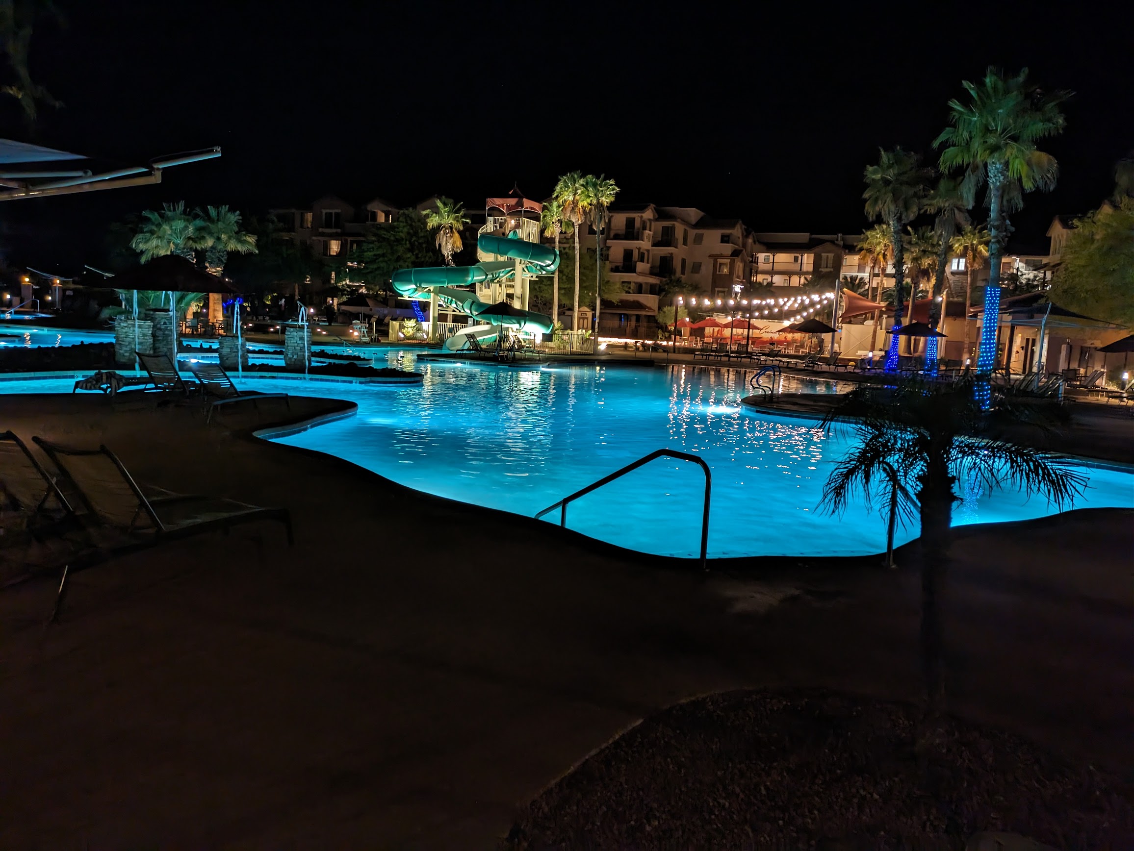 The Vortex Pool at Bluegreen Vacations Cibola Vista & Spa is an adults-only, jetted pool designed for relaxation. It features a unique swirling current, offering a tranquil hydrotherapy experience as part of the resort's amenities.