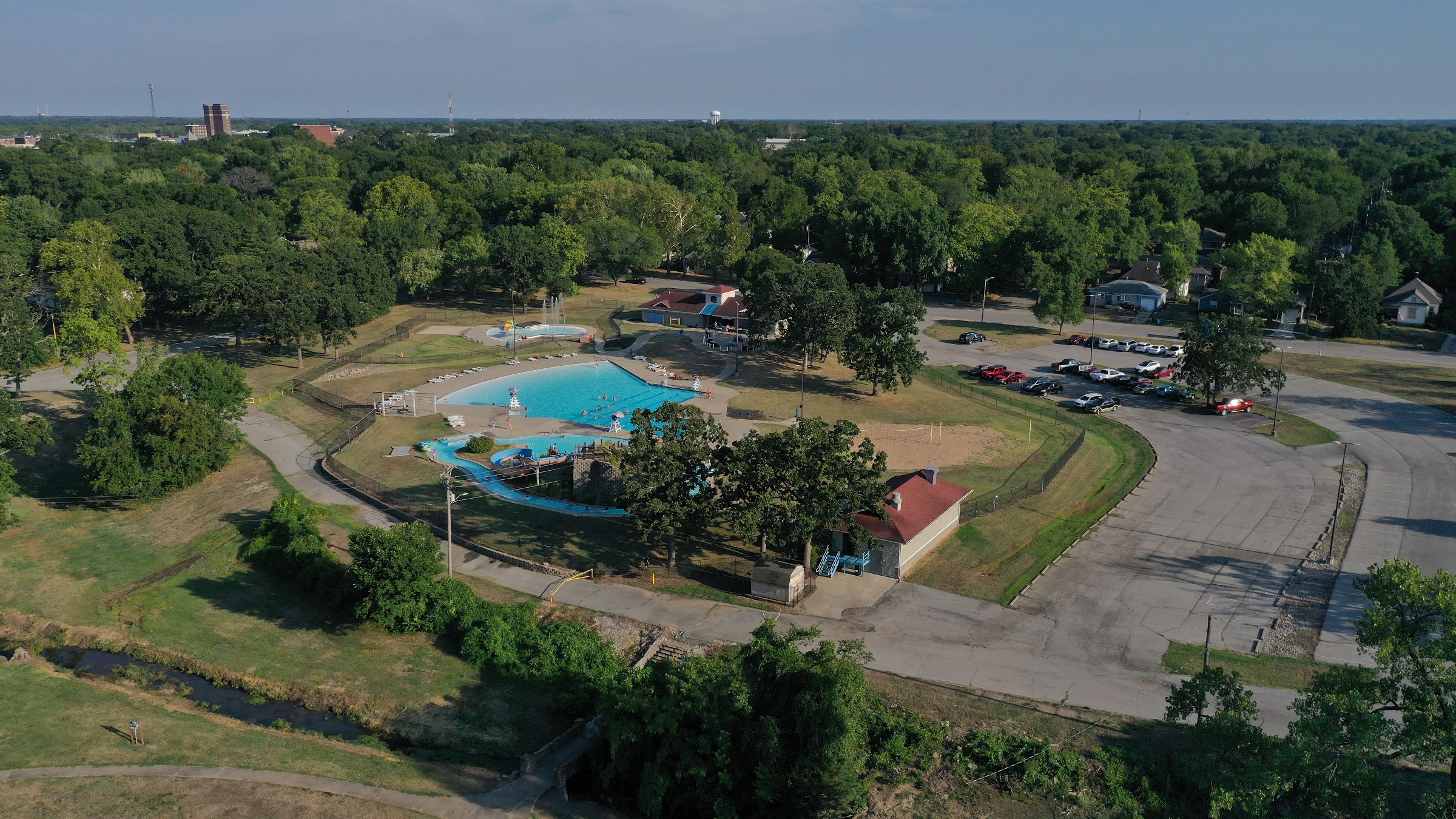 Family-friendly public pool offering swimming lessons as well as water slides, a lazy river and a wading pool.