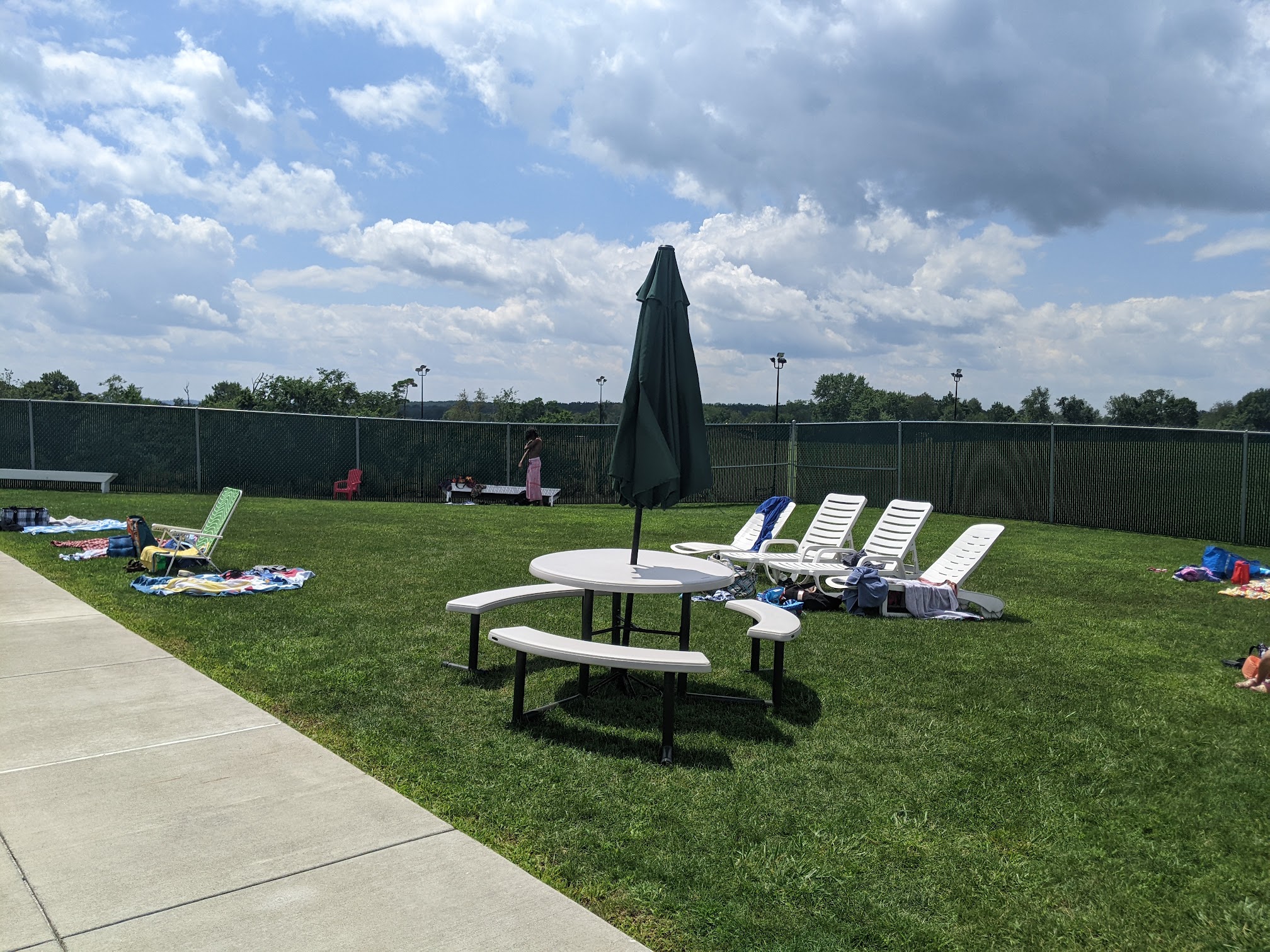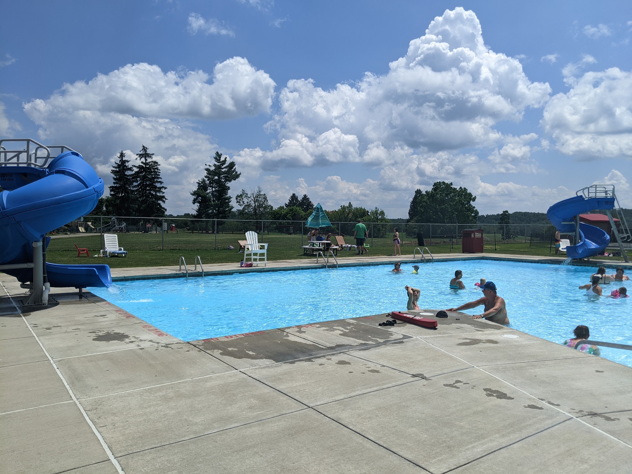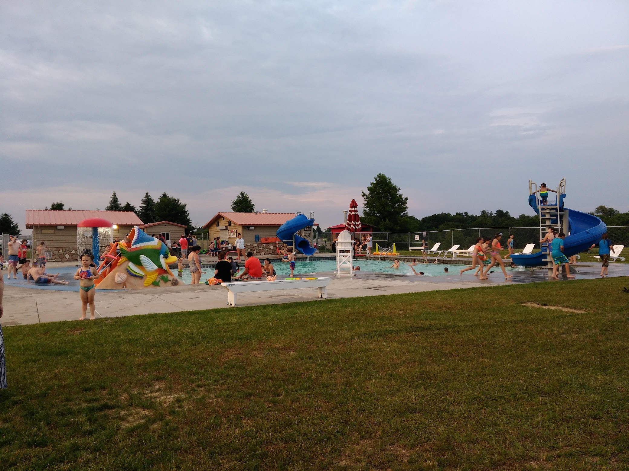 A great little pool for young families and elementary-aged students. It was lifeguarded well. The two bigger slides were very fun for my 5 year old new swimmer. She enjoyed the little fish slide for the littles as well. the splash pad had very cold water, even for a hot day, but the kids still played in it. It had a very family-friendly atmosphere with a nice green lawn for chairs, towels, and relaxing. I noticed that the concession stand was highly frequented as well.