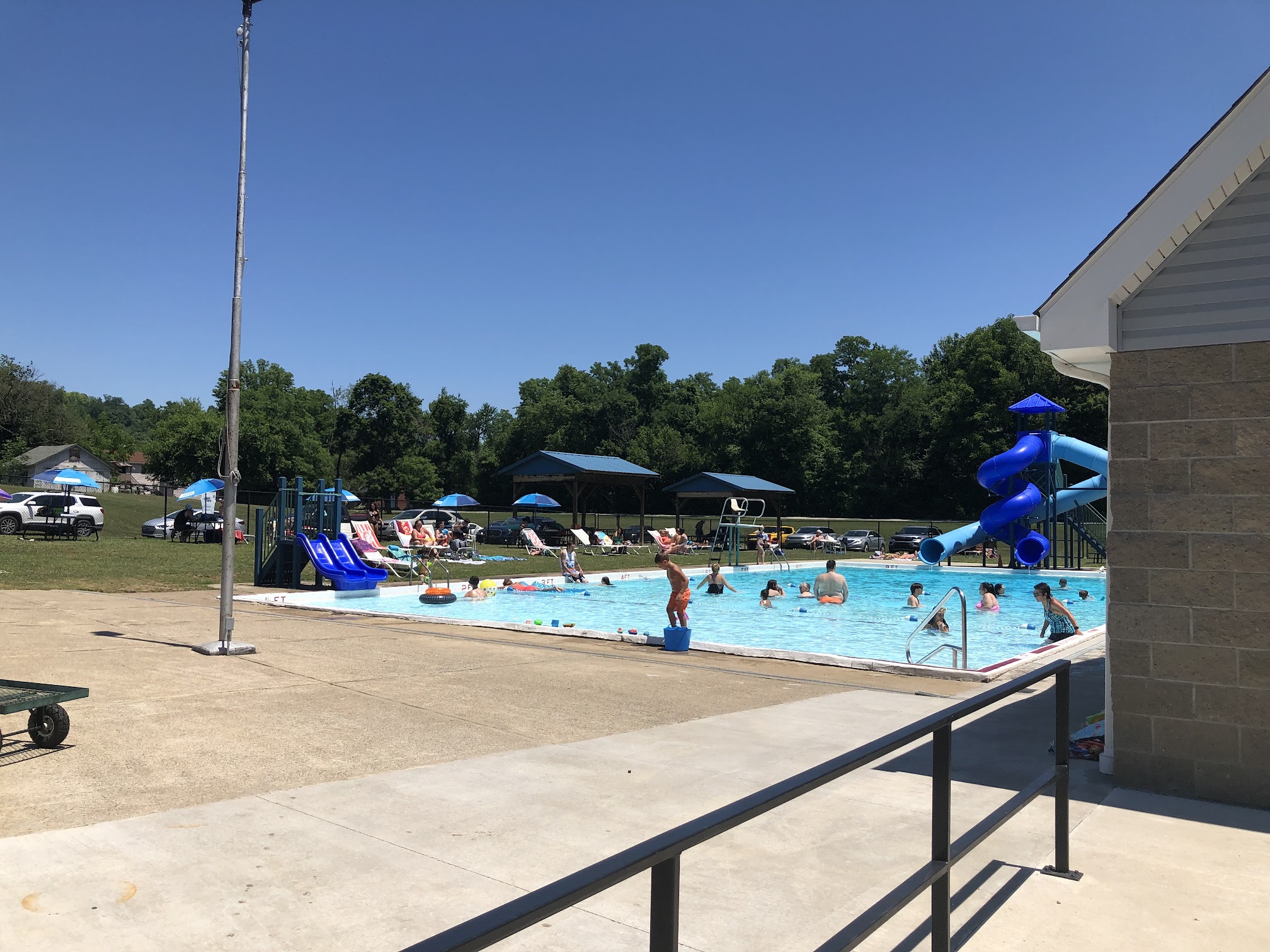 What are people saying (AI review summary)? The pool generally receives positive feedback for its cleanliness, well-maintained facilities, and friendly guards. Visitors appreciate the $6 admission fee, free parking, and reasonable prices for concessions. The slides, including two large ones and one for tots, are highlighted as very fast and fun, making it great for children. While some found the restrooms 'weird,' this was often accepted as typical for a public facility. However, experiences with the concession stand are mixed; one review detailed a very negative interaction with staff regarding food, contrasting with other reviews that found the concession stand good. A minor complaint mentioned is annoying behavior from kids jumping into the pool. Despite these points, it is largely considered a very great public pool.
