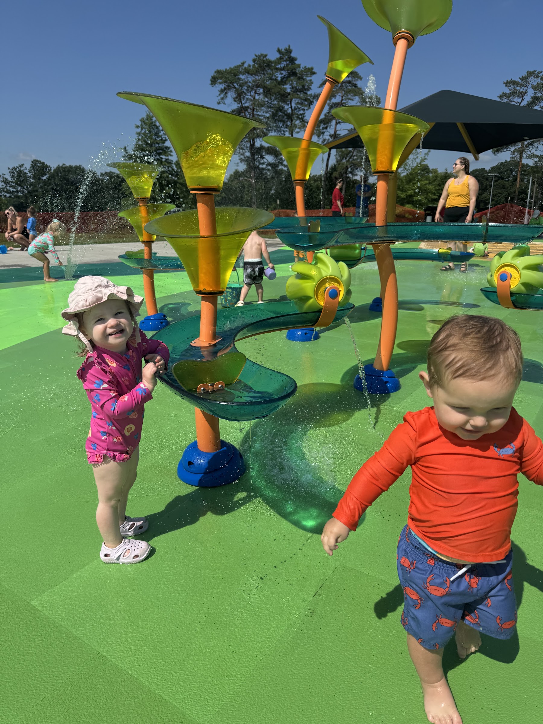 Absolutely amazing! We usually go to Round Hill, but my kids kept getting scraped up, so we decided to give this a try. So much more things for them to do and the rubberized floors are a godsend. They even have a small section where there are dips in the floor so the kids can lay in puddle of water. The buttons to get the water to turn on again are also a hot commodity and super fun. I really appreciate the standard restrooms and of course the first aid kits just in case! All this, for free! We will be back many times! I hope this park eventually gets a pool within the next few years! It also was nowhere near as crowded as Round Hill on a hot Saturday