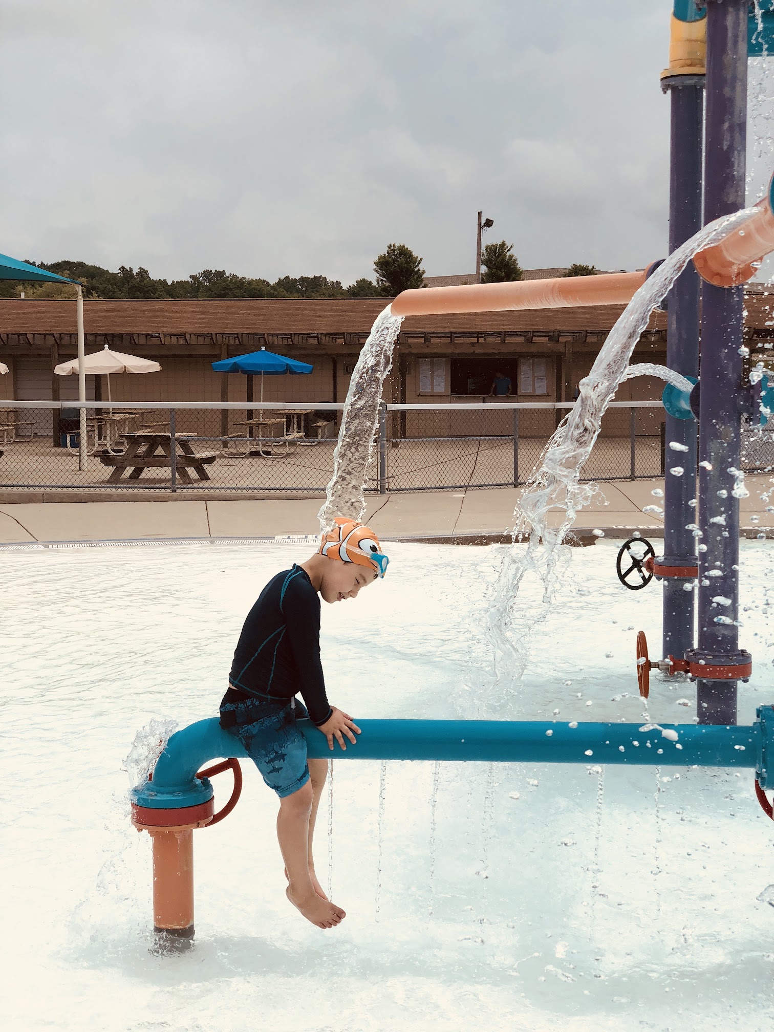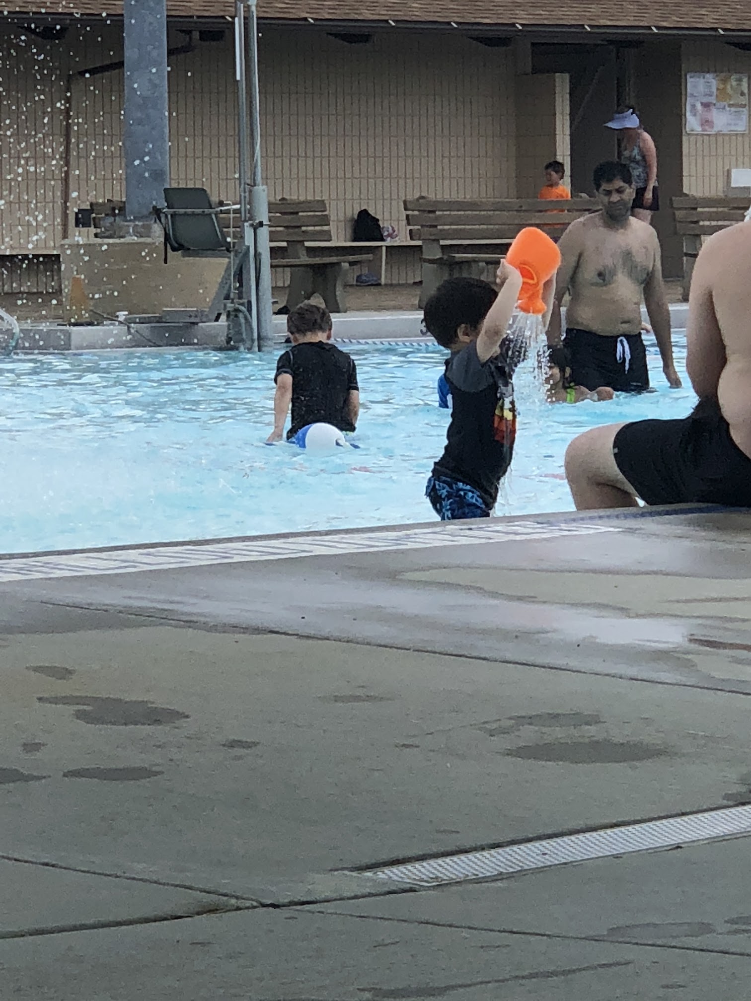 Great community pool with well trained and well managed life guard staff that is alert and attentive to safety. Zero entry side of the pool is perfect for young, new walkers and crawlers. It's also a convenient play area for mixed age young children if you have two with you because the water sprayers are fun. Great slides that the kids love. Separate, large roped areas with different depth levels that accommodate play and recreation for different swim skill levels. Diving area. Changing rooms and bathrooms are clean. Snack bar available for ordering food and a local pizza shop delivers. Covered party pavilions can be reserved/rented. I really appreciate the staff response to inclement weather and the overall safe and welcoming vibe.