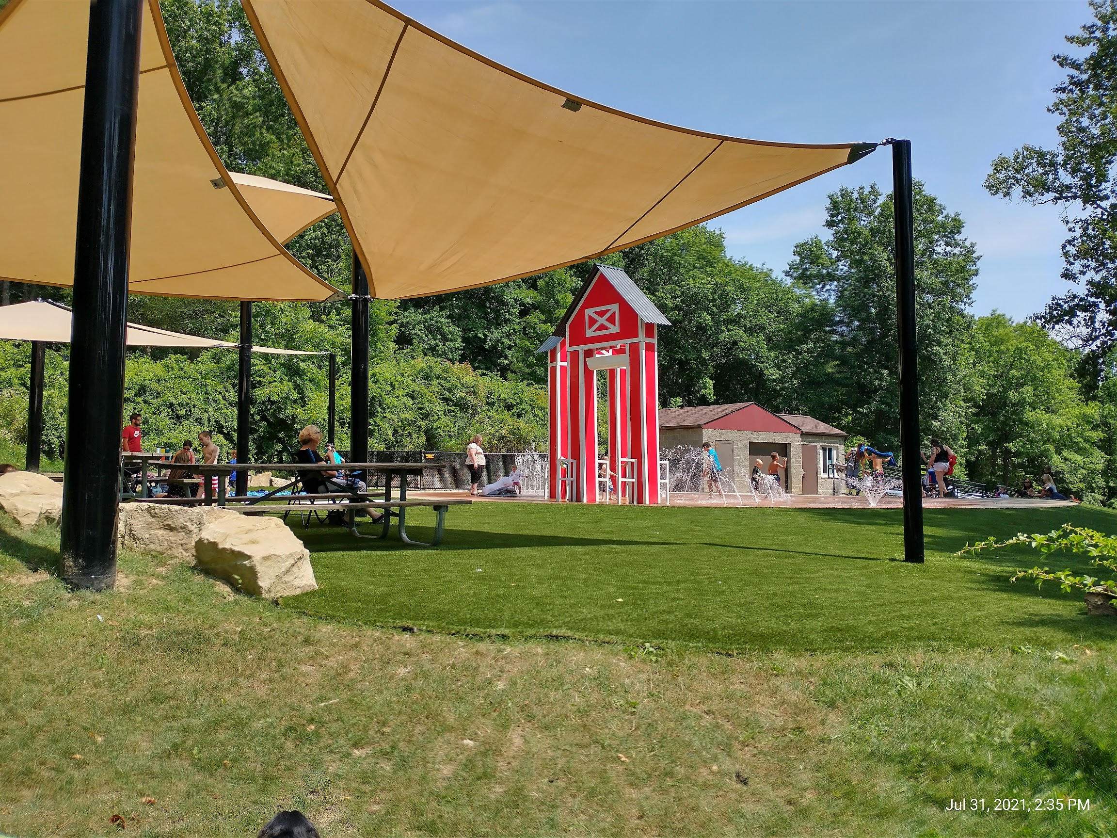 Round Hill Spray park is nice. You can visit the farm animals, have a picnic and let the kids get wet! Don't forget to bring crackers for the ducks in the pond!