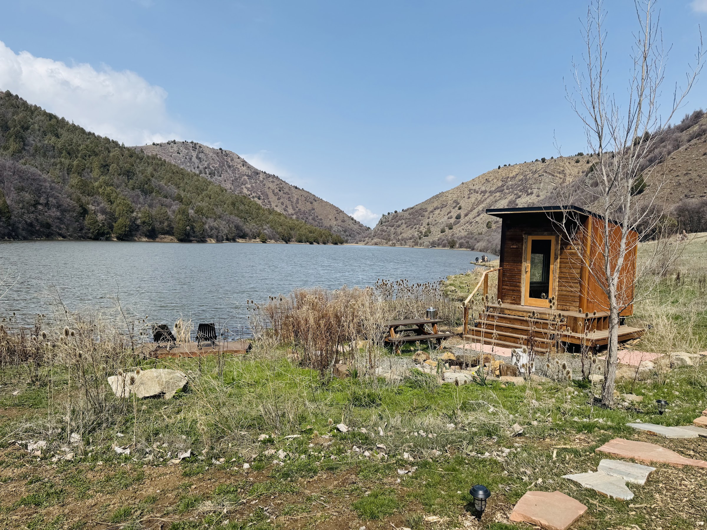 I’ve never stayed in one of the cabins or yurts but I bet they’re great! This place is situated in a quiet cove with cold freshwater access for canoeing (provided!) and cool plunges. They keep the allowed guests capped at a max to help keep the calm and open space. The pools are natural with a lot of stone and native plant landscaping. Love the big open pool that is concrete too. Always good temps, love their food service also. There’s not much to DISLIKE at this place. I try to make a stop every time we pass through northern Utah or S Idaho. So easy to relax.