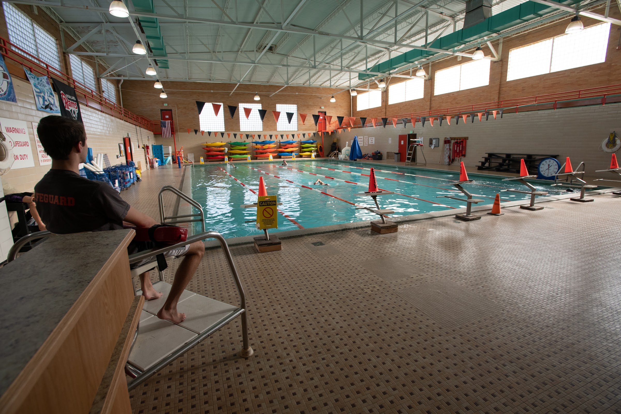 The aquatics center at Reed Gym features multiple pools. The lap pool is typically maintained at a temperature of 79-81°F (approximately 26.1-27.2°C), while the activity pool is usually kept warmer, ranging from 84-86°F (approximately 28.9-30°C).