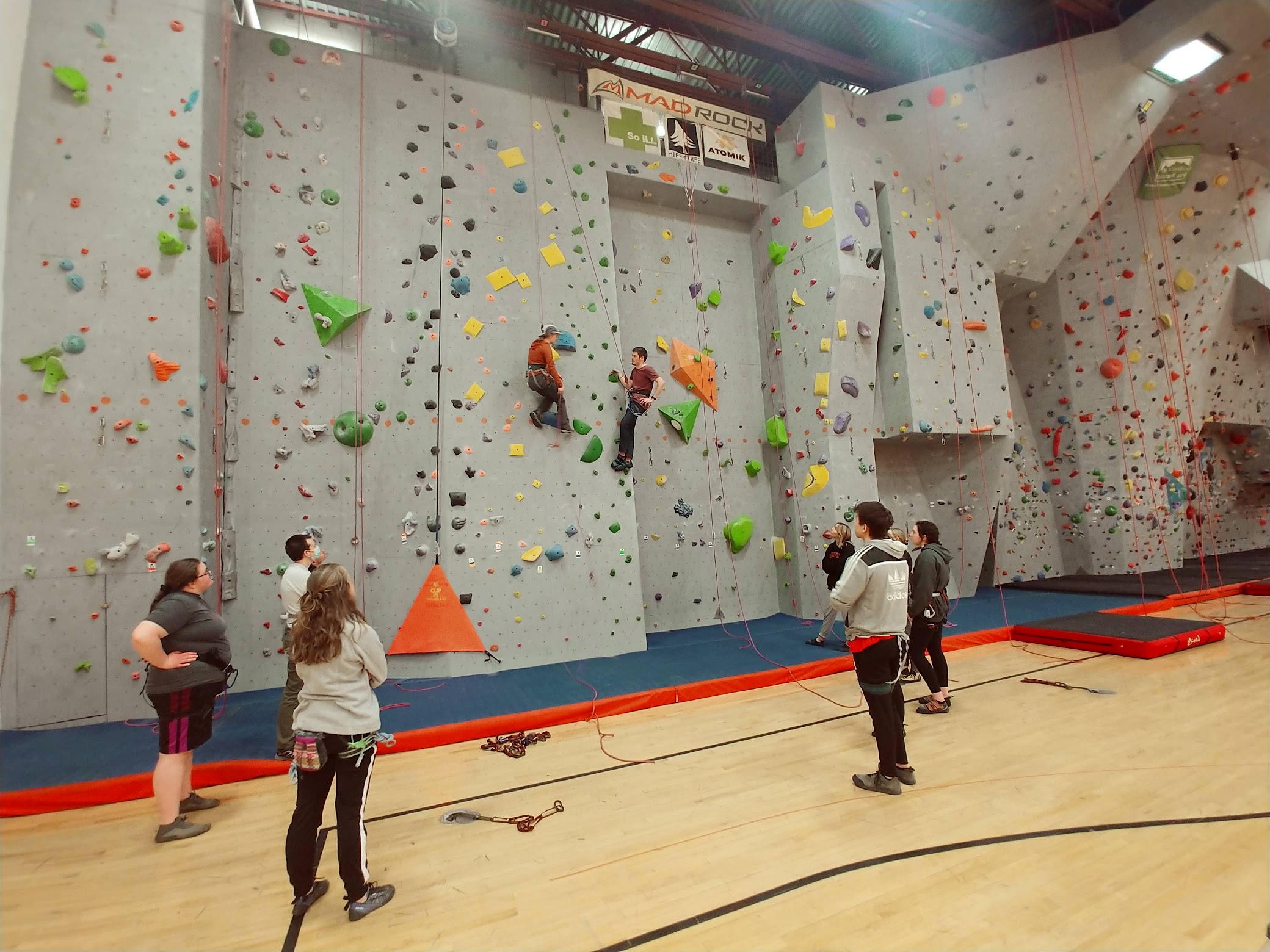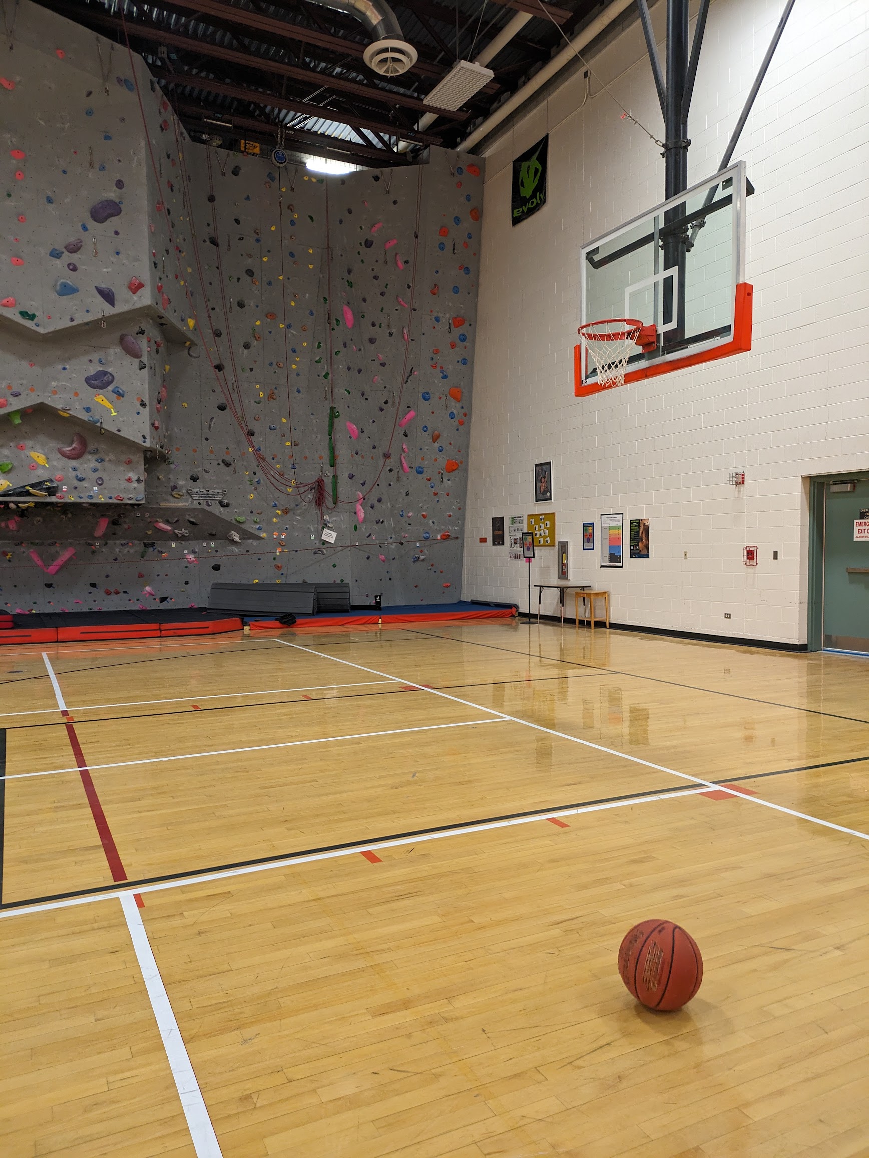 Clean fitness facility with a climbing wall and a pool, plus personal trainers.