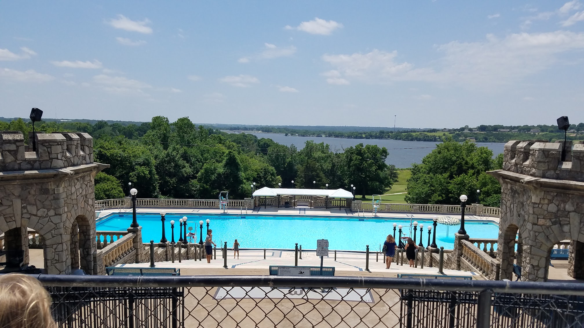 Girl, put down your potato chips and go swimming. This pool is so fun. It's so pretty and has great views. Diving boards, snack bar, GORGEOUS scenery, sweet lifeguards, and a mushroom waterfall for the babies. Keep in mind the most shallow area is like 4 ft., so floating are needed. It's the best Pool I have ever been in and I LOVE it here. It's my summer hot spot. I'll see you there!