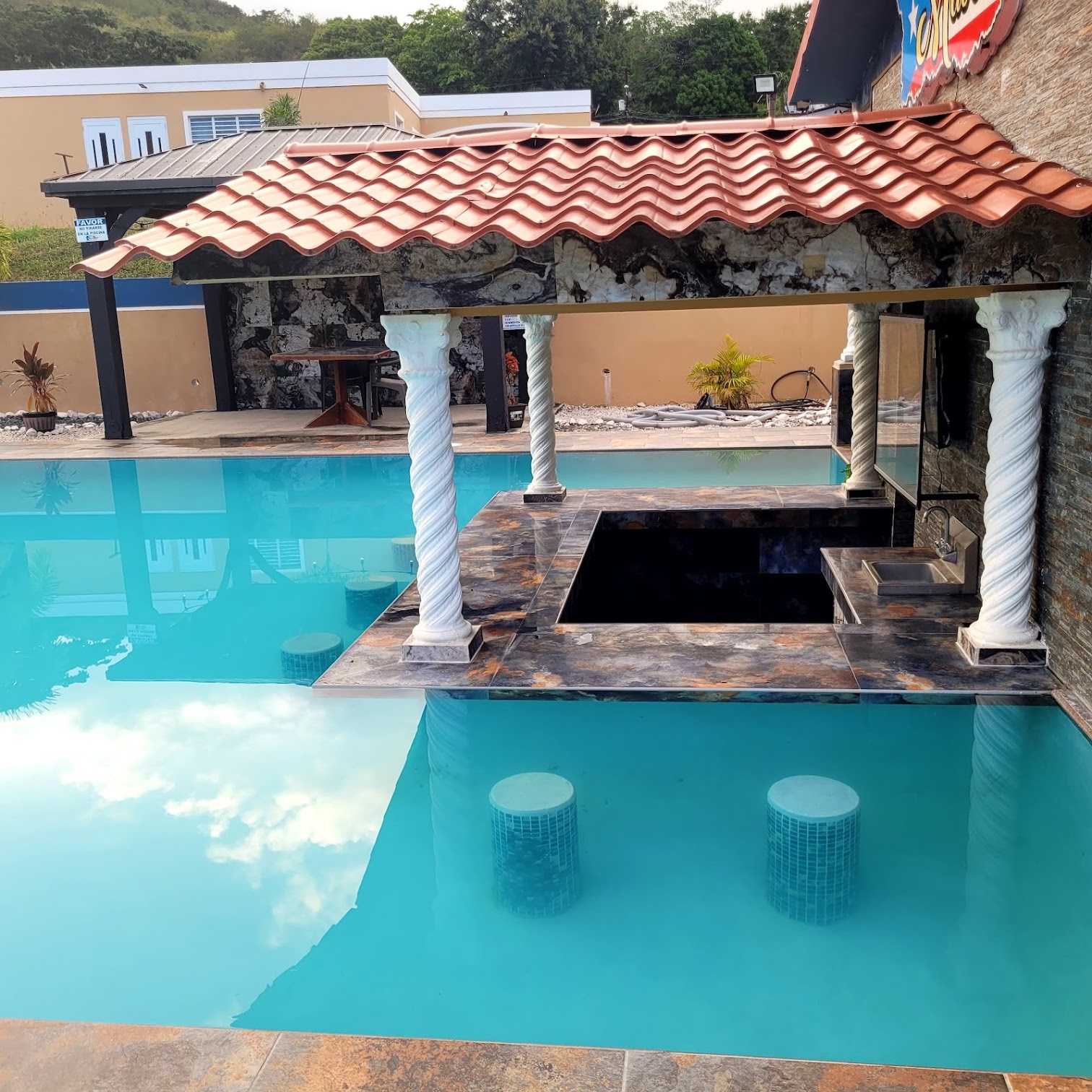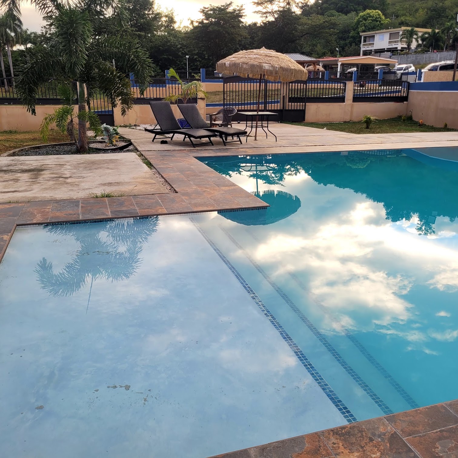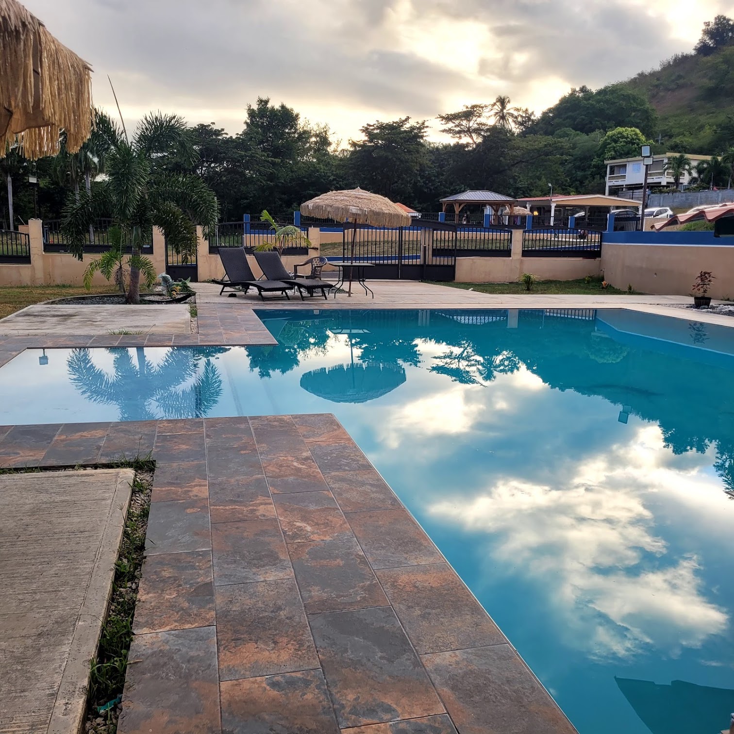 The estate typically includes a private outdoor swimming pool. Specific temperature details for the pool are not usually provided, as outdoor pools in tropical climates like Puerto Rico are generally unheated and their temperature naturally fluctuates with the warm ambient weather conditions, offering a comfortable swimming experience.