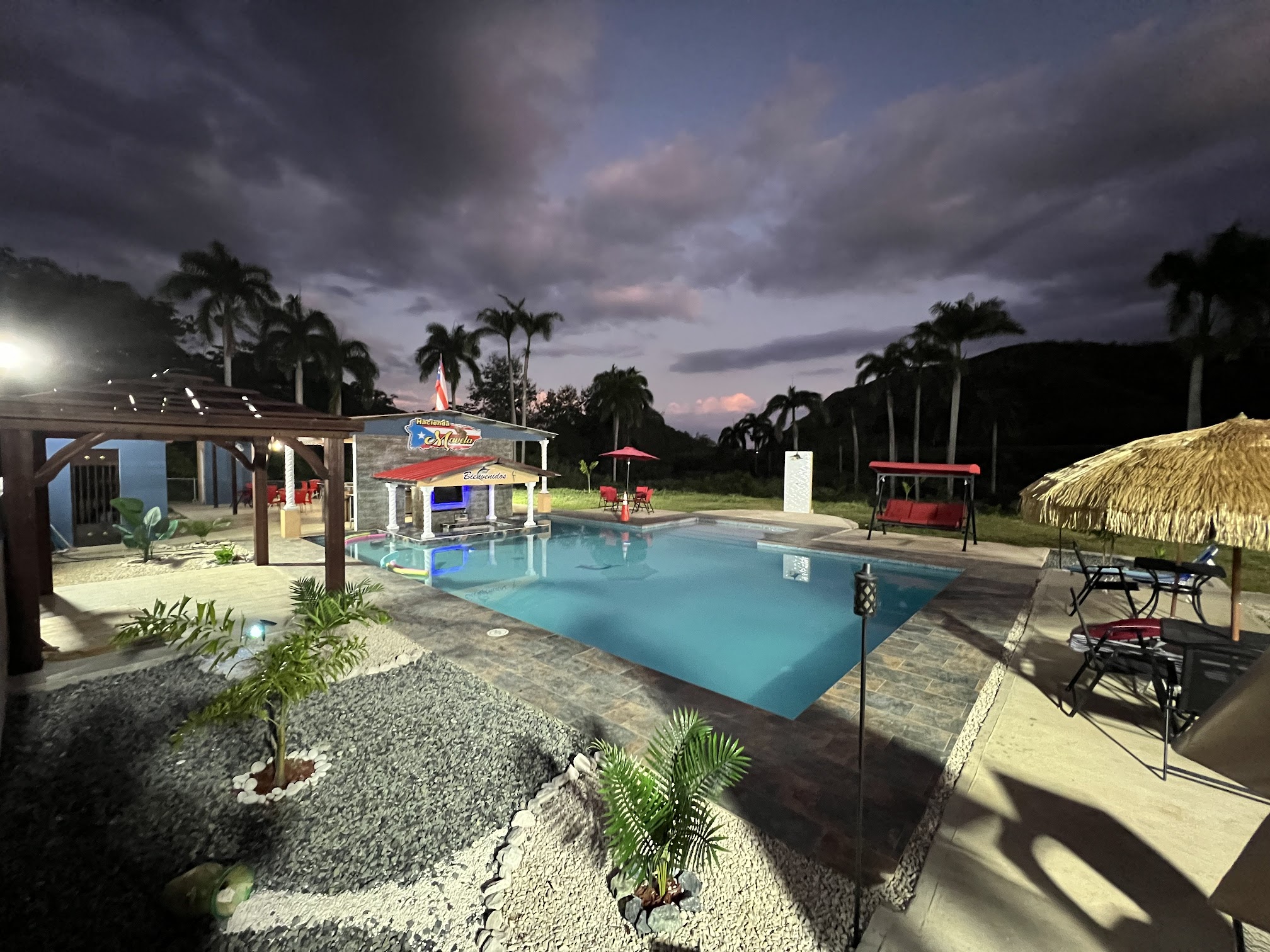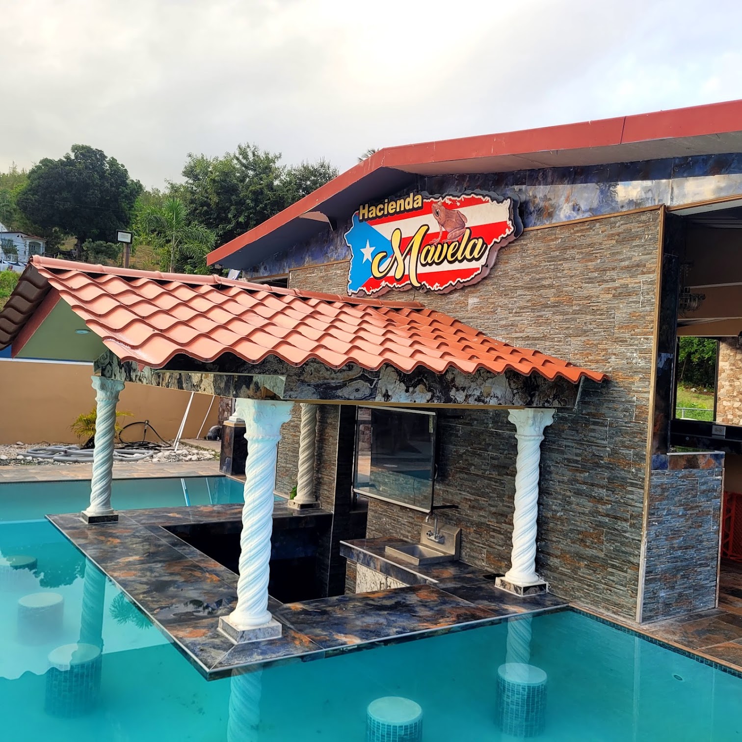 Mavela Guayanilla Estate, located in Guayanilla, Puerto Rico, is a spacious private estate often utilized as a vacation rental or event venue. It features extensive grounds, multiple bedrooms, and common areas, making it suitable for large groups, families, or special occasions. The estate offers a tranquil setting for relaxation and entertainment.
