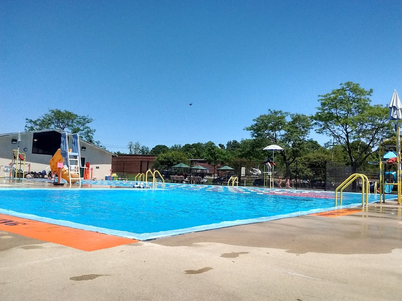 City-managed swimming pool with a playground.