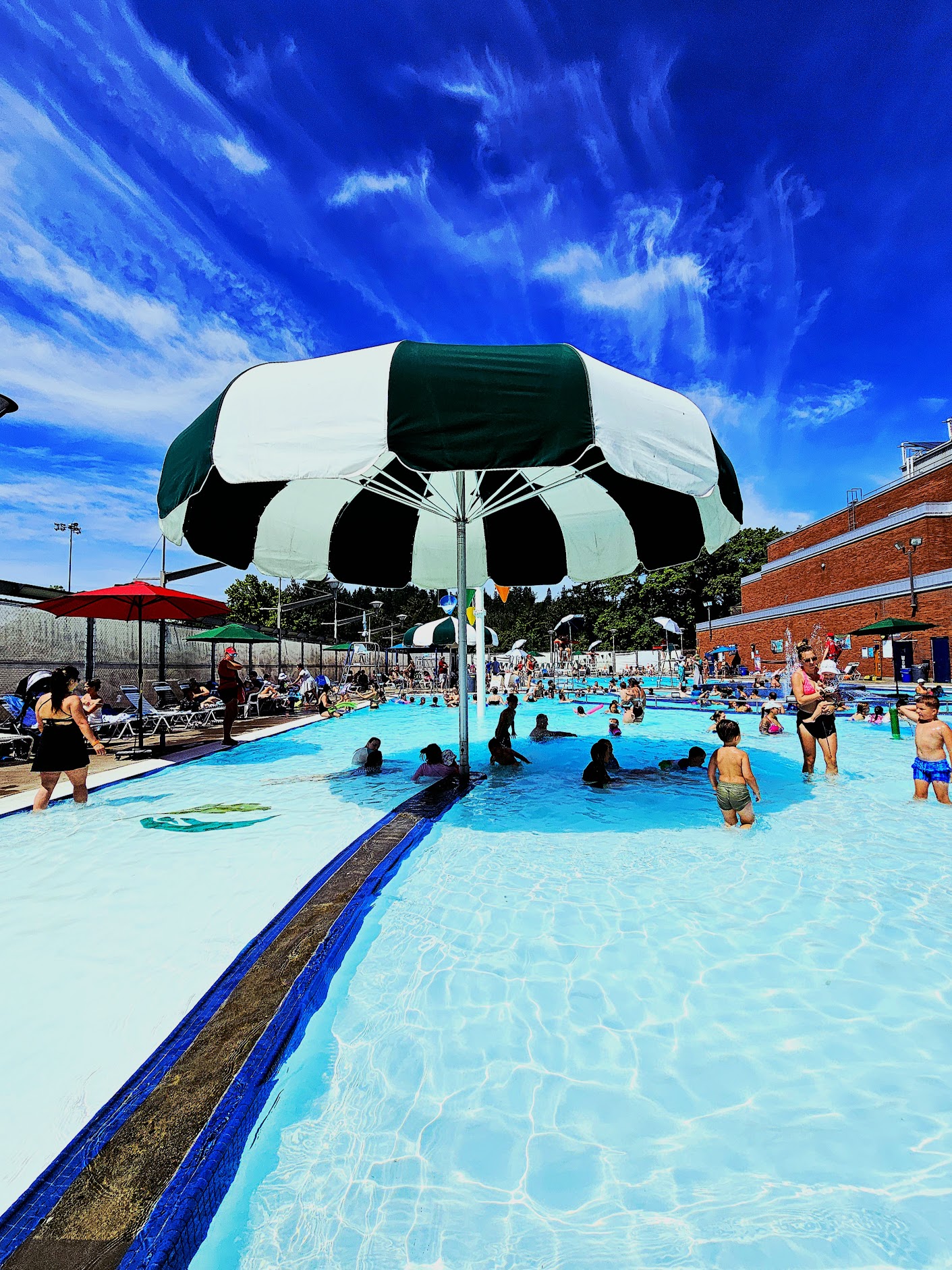 We lovw this pool! It offers alot of fun for the family. My kiddos love the water slide and lazy river with the whirlpool. Im giving 4 stars due to lifeguards not always paying attention.. my 7 year old jumped off the diving board, and another kid didn't follow the rules and wait for my kid to come back up from under the water, and decided to jump in and landed on my child and almost drowned him!! Lifeguards did nothing to protect my child in this situation. Multiple children blocking access to the stairs out of the deepest pool making it impossible for anyone to get out, once again lifeguards just allowed the build up while I watched a little girl basically struggle to tread water. So tho this pool offers fun amenities, staff dont pay great attention to the environment around them, so definitely make sure your watching your own children during play. 🩵