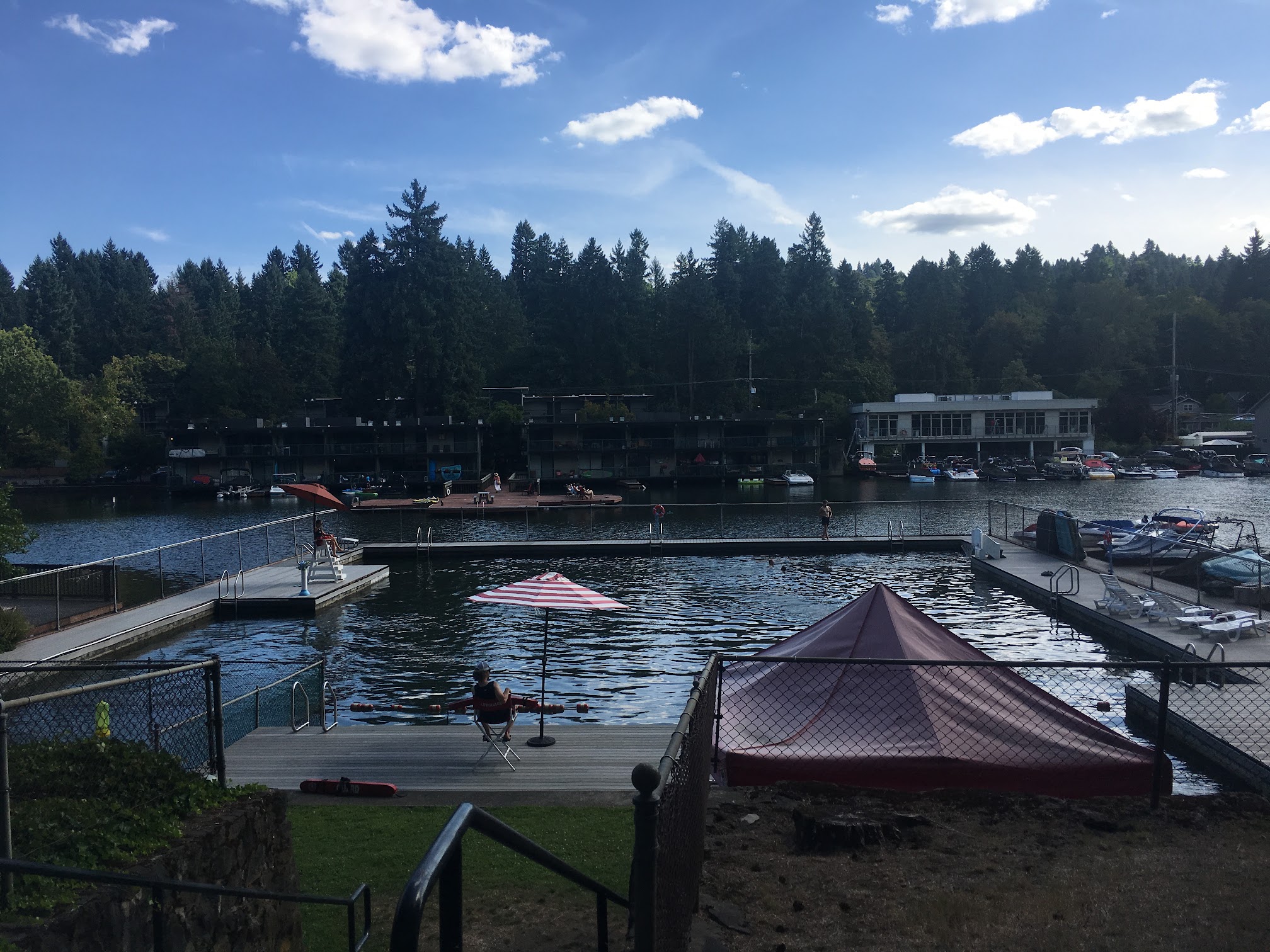 Yuck. The Lake Oswego Swim Park is owned and operated by the City of Lake Oswego and is open to all city residents (but not to residents with homes in the city limits that are in unincorporated Clackamas County). The Lake Grove Swim Park, which has more limited access based on a map of lots included in the original deed - it is owned and operated by the Lake Oswego School District, and is separate from this park. As a city resident, I expect something much nicer and better maintained. It is like a neglected campground, and not in a good way. The city operates only one swim park and needs to take better care. Instead of the city paying a consultant $744k for a vision statement, take care of this park. All the stone walls and pavers need pressure washing and sealing. The chain link fence surrounding the dock is ghetto. There should be real bathrooms with changing rooms and lockers, not a port-a-potty. The divider ropes are covered in green algae and bugs. The water within the swim area needs to be cleaned daily with a net because it is littered with bugs and fir needles. We saw a dead fish head and candy wrappers today. I would like the ability to takeout our paddle boards from here, but they are not allowed. I appreciate that it is staffed, that inner tubes are provided and that the dock is in good condition (although the edge along the water is covered in spiderwebs). Less City Code enforcement funding, greater capital improvements and better maintenance, please.