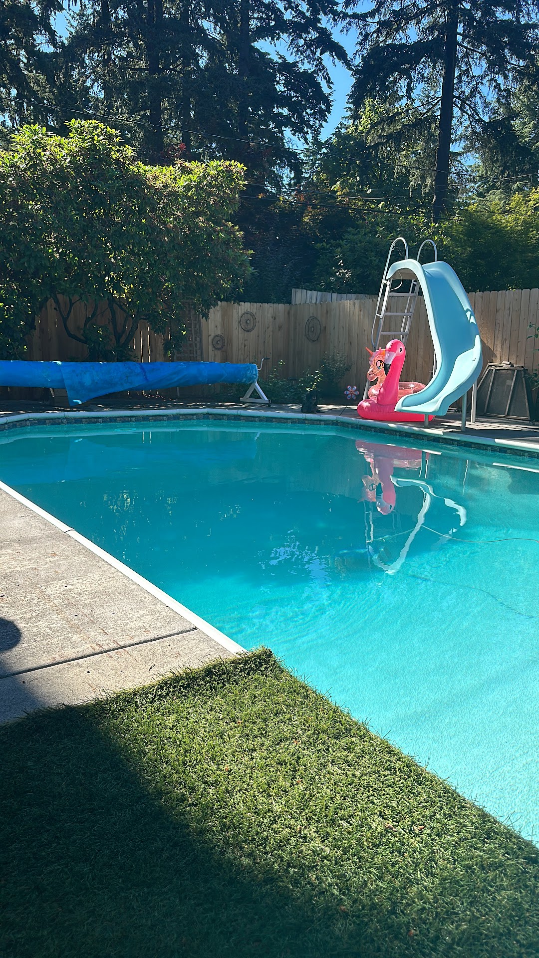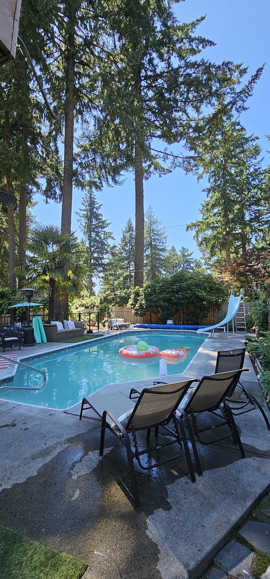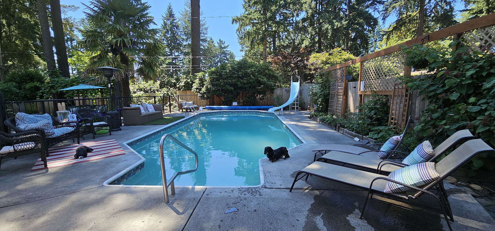What an absolutely beautiful backyard and a wonderful pool. Truly an oasis! Megan and Robert are wonderful hosts. The pool was a pleasant temperature and the water slide is a lot of fun. They have tons of pool floaties, changing rooms, and a warm outdoor shower. Everyone always has a blast. Been back many times. The swimply app makes it very easy to rent. Highly recommend!