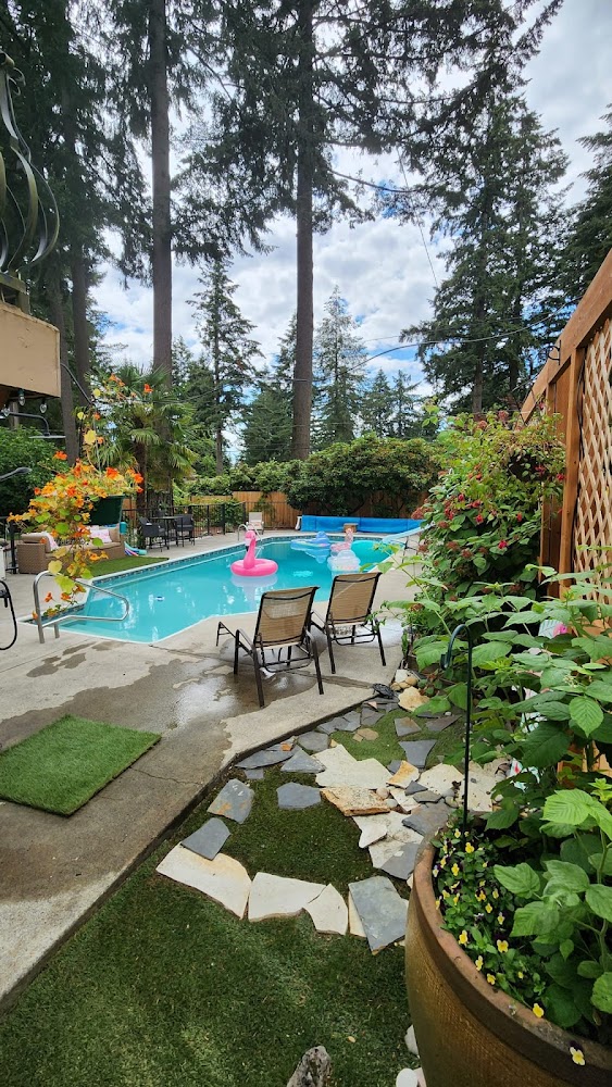 Little Oasis is a private backyard swimming pool for rent located at 908 SE 98th Ave, Vancouver, WA. It provides a secluded and family-friendly environment, featuring a heated pool, a spacious grass area, a fire pit, a BBQ grill, and a trampoline, making it an ideal spot for private gatherings and relaxation away from public crowds.