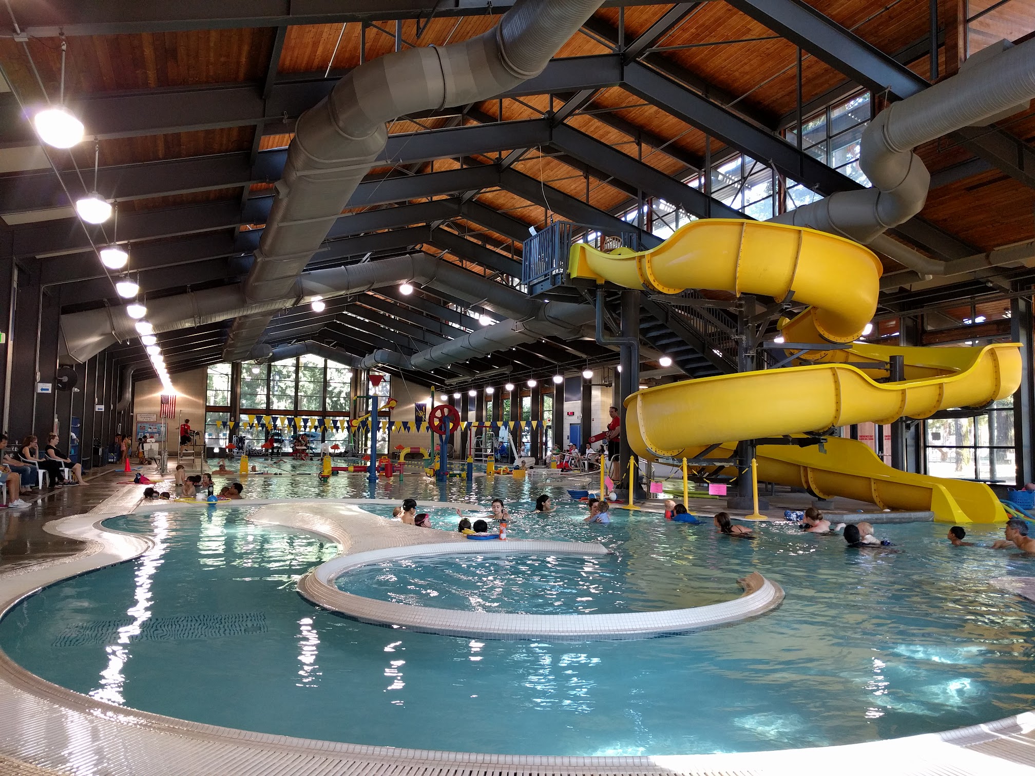 Very fun indoor pool! Waterslide, lap pool, pretty strong lazy river, rope swing, fun kiddie pool area with water feature and hot tub for the adults. Great place to spend a warm summer day! Reasonably priced too! For drop ins it is $4 for kids, $4.50 for teens & adults and $5.75 for adults. If you go M-F you can do family swim and open play swim back to back from 12-3:30.