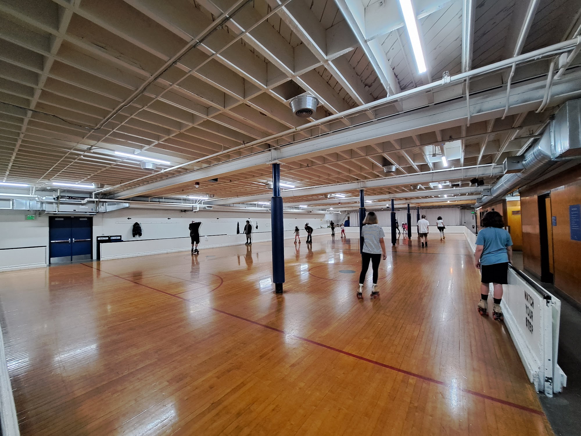 Spacious center offering gym access and pools, plus classes and a roller-skating rink.