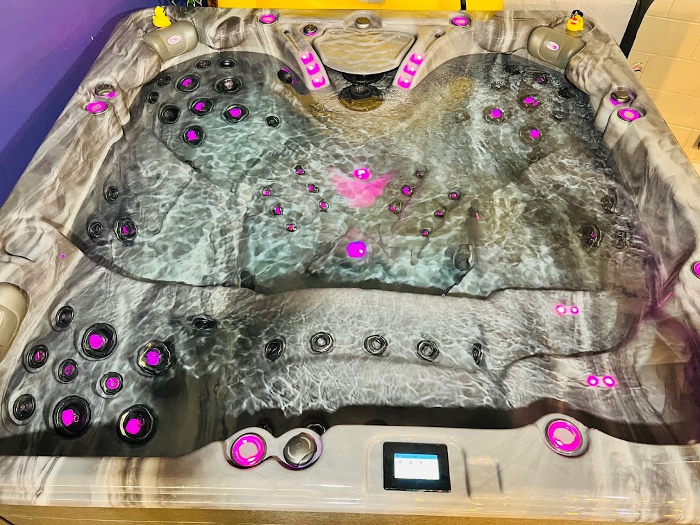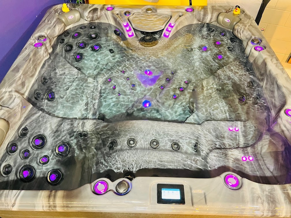 Showroom featuring a range of hot tubs and swim spas, plus installation and maintenance services.