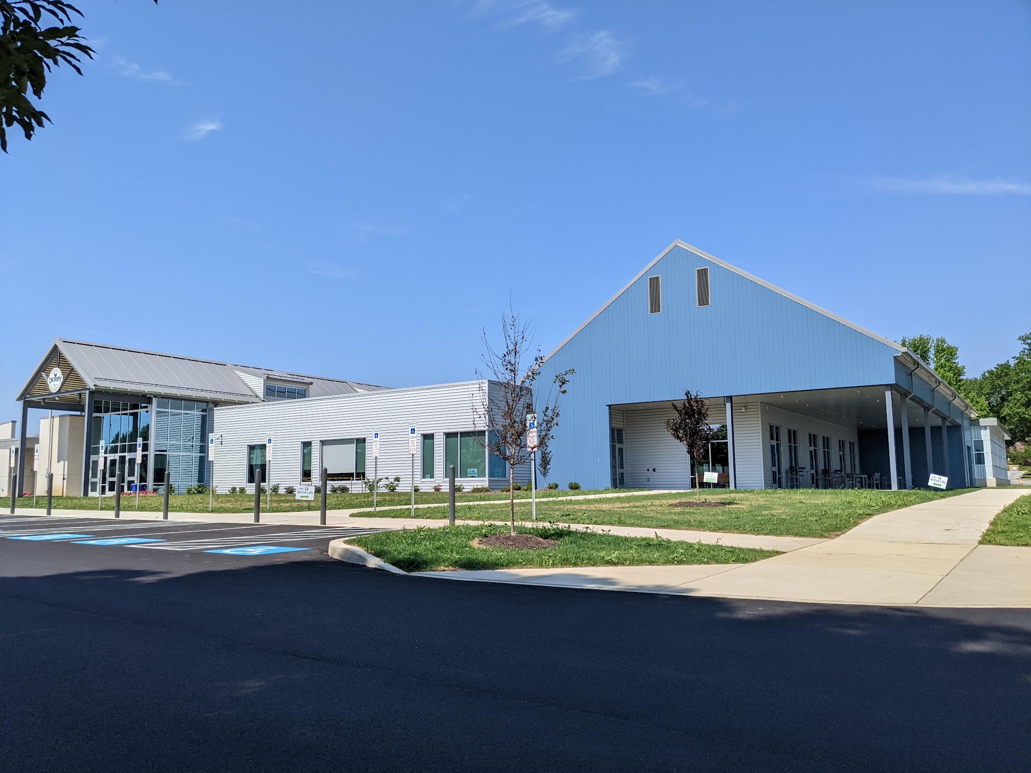 Community center with a public pool, basketball, and tennis courts, plus a playground and skate park.