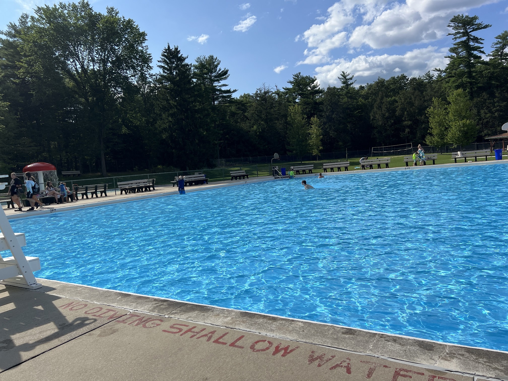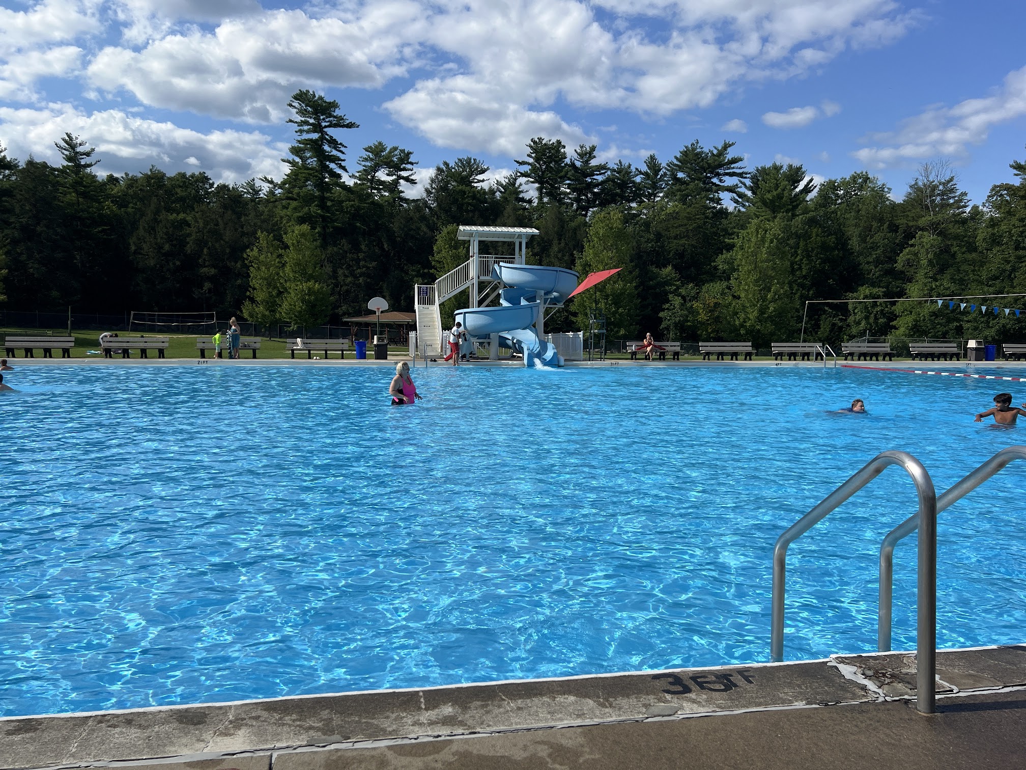 Beautiful huge clean pool with a lovely wooded area surrounding it. The entry fee and snack stand were all reasonable prices. Very nice well mannered young staff!