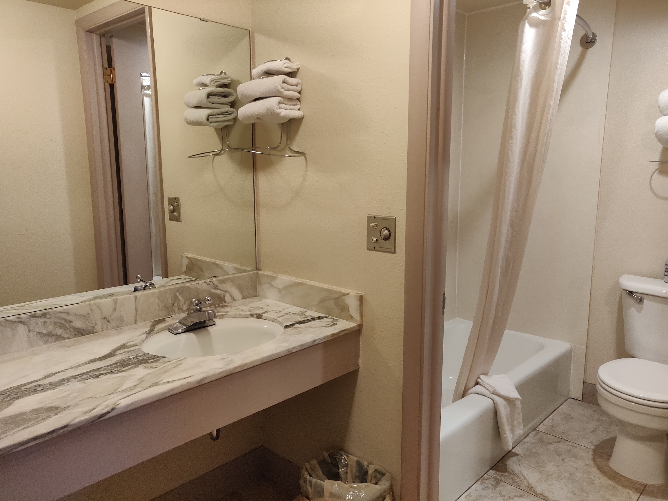 Only reason for 3 star is my room looked better than outside. Feont desk was a little off about check in. Could've been nicer. Older small town area. Pool is by front desk area. Odd location. And have to drive to front area and rooms. Sheets and blankets were thin. Had to constantly have air on (which was loud ) in order to have fresh air. And the hallway lights shined in room all night was a pain in the butt to actually sleep w lights shinning in room