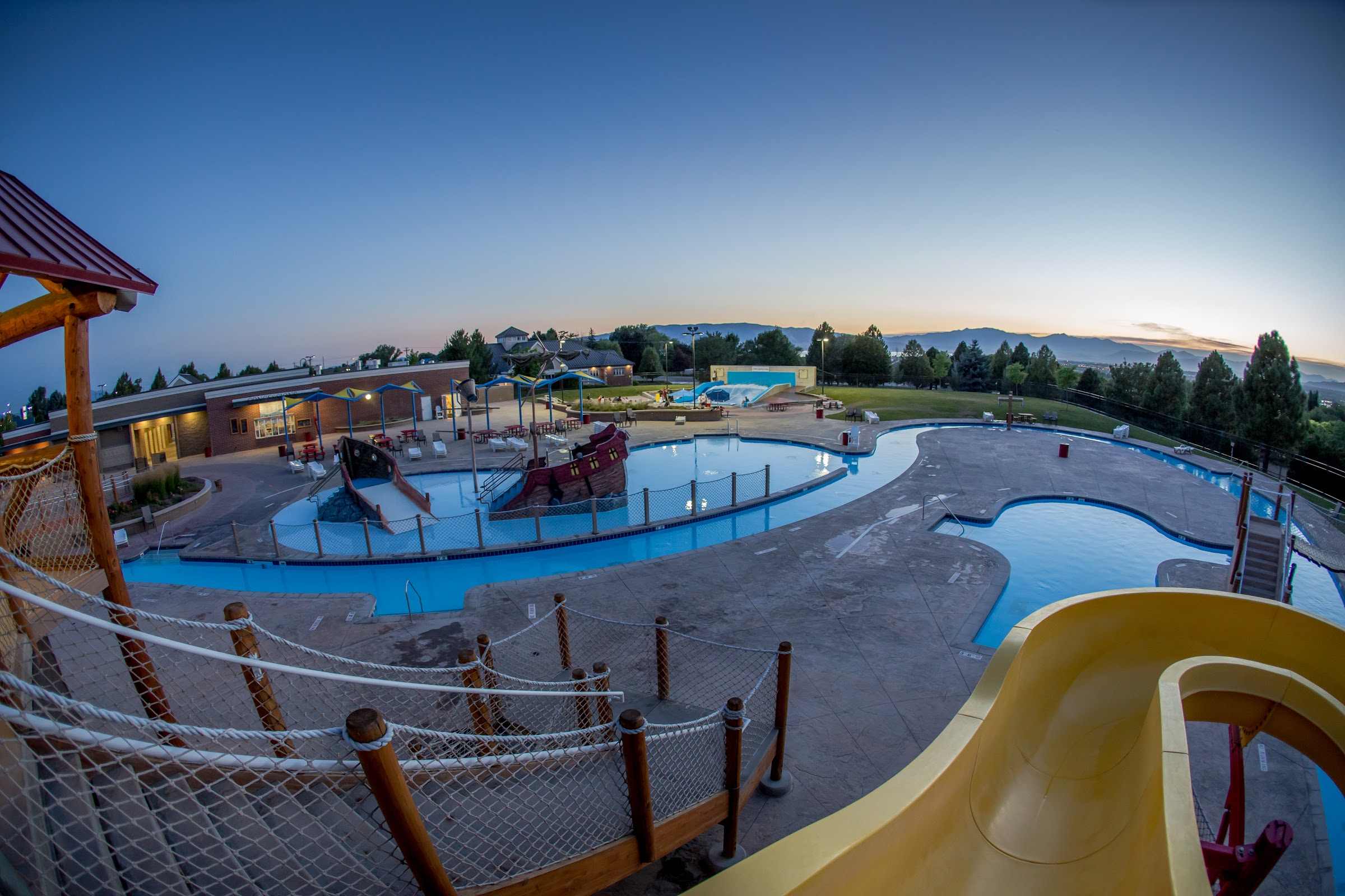This is a very fun outdoor pool. It's like a much smaller splash summit. There are height restrictions on the slides. The smaller yellow slide was slow and we got stuck a few times. The taller slide is very fun, but you will get water directly to your face.